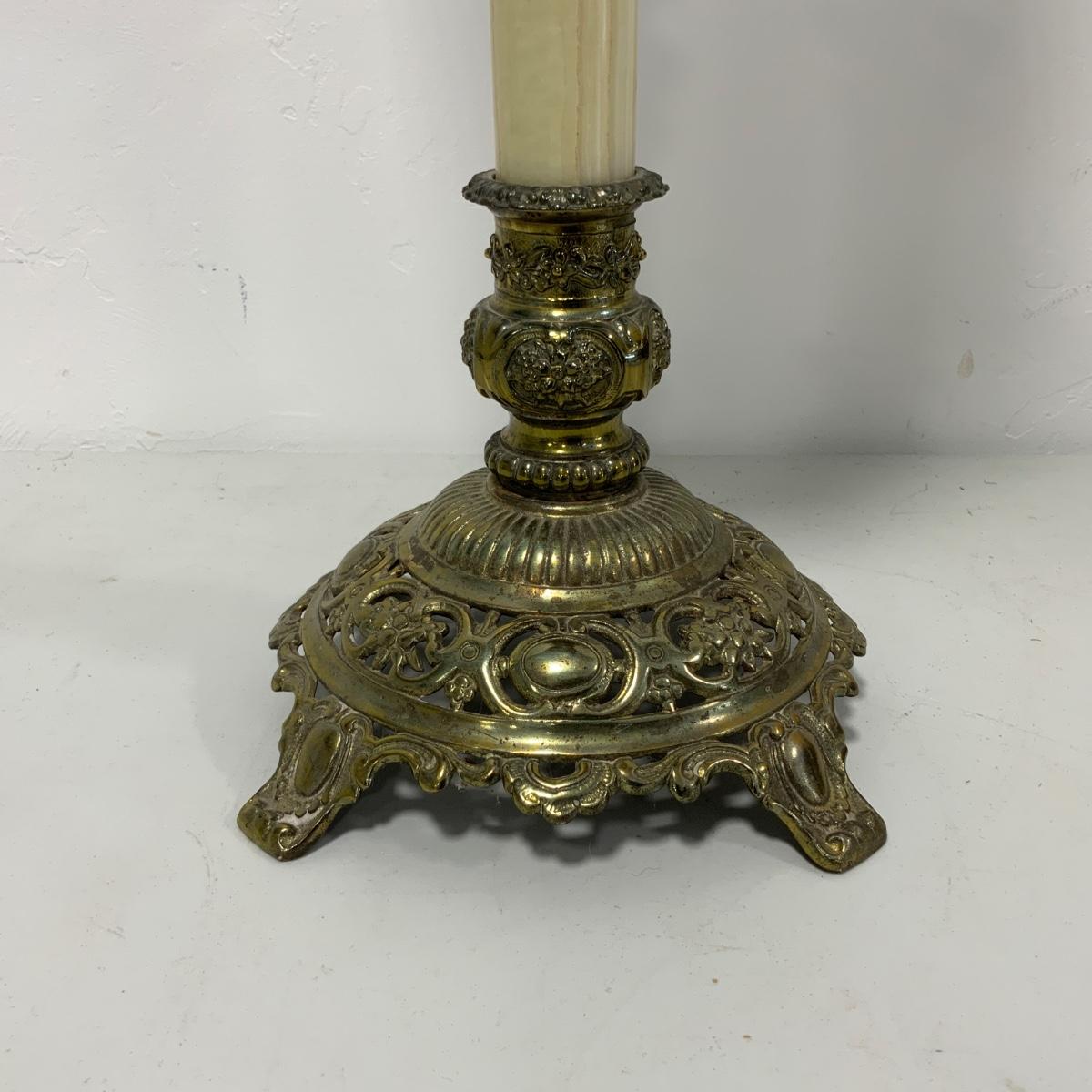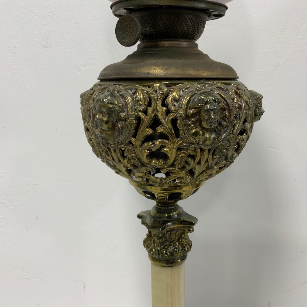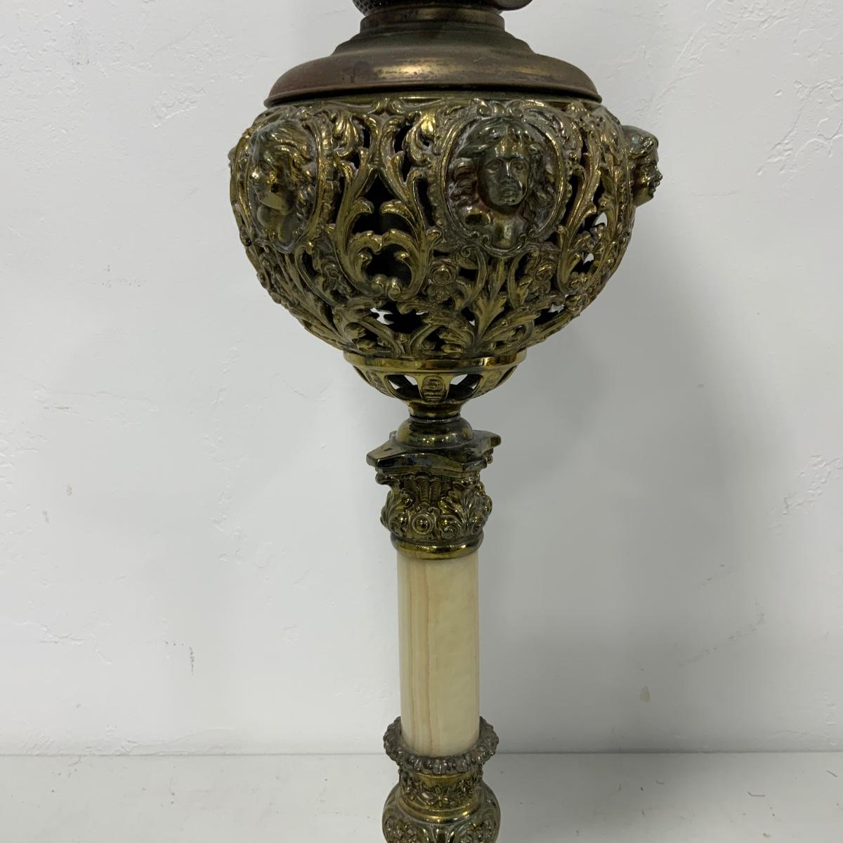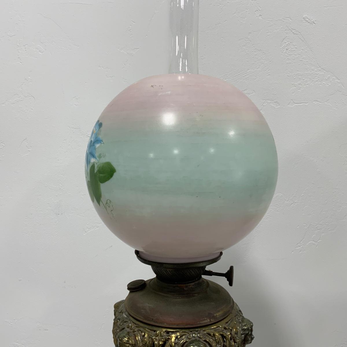 .63. Hand Painted Banquet Lamp | Onyx Stem | c. 1890