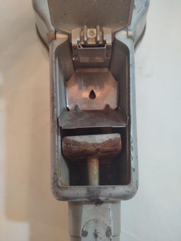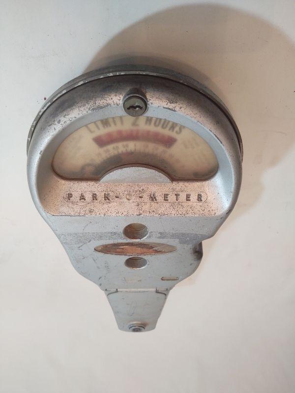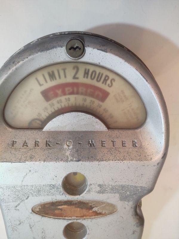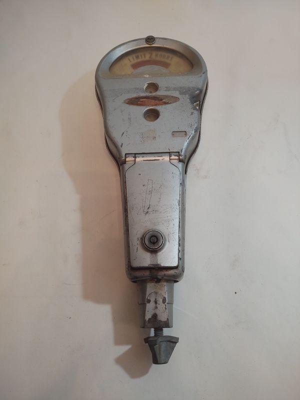 Municipal parking meter that was pulled from service. Coin box is open. No key available.