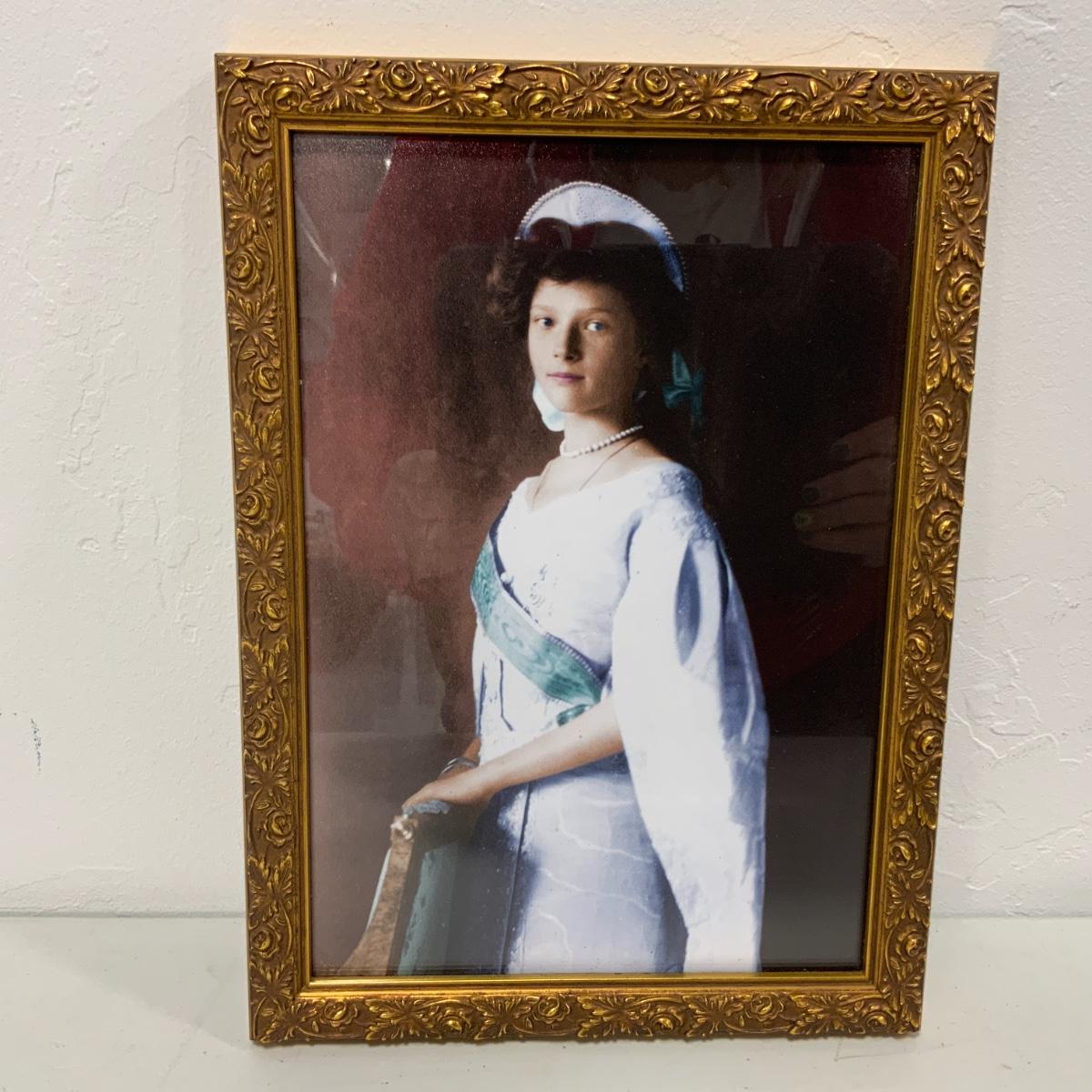 From the Estate of Peter Radovanovich: Beautiful reproduction photo of Grand Duchess Tatiana Romanov. Taken in 1900. This picture is framed behind conservation glass by a reputable local frame shop. Frame measures 12.75” x 9.25”. Please see photos for details and condition. ::: Shipping is available on this lot. If you require shipping you must let us know at the close of the auction. We will coordinate with you after the item has been won. Shipping fees will include insurance up to or exceeding the value of all items being mailed. If you have any questions regarding this lot please contact the auctioneer either via this website, by direct email or by phone. PICK UP TIMES and other important information can be found in the TERMS and DESCRIPTION of the auction. Please take a look for pertinent information. Thanks!