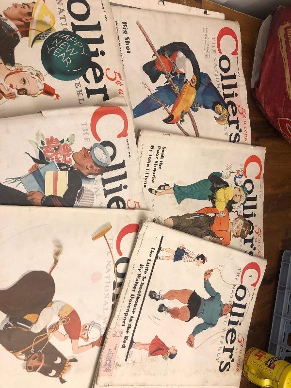 Bundle of six collier vintage magazines from 1935 and 1936. Awesome graphics. This is an ONSITE Auction all items will need to be picked up on location. Please see auction description for pick up procedures.