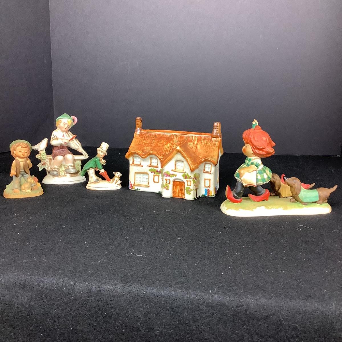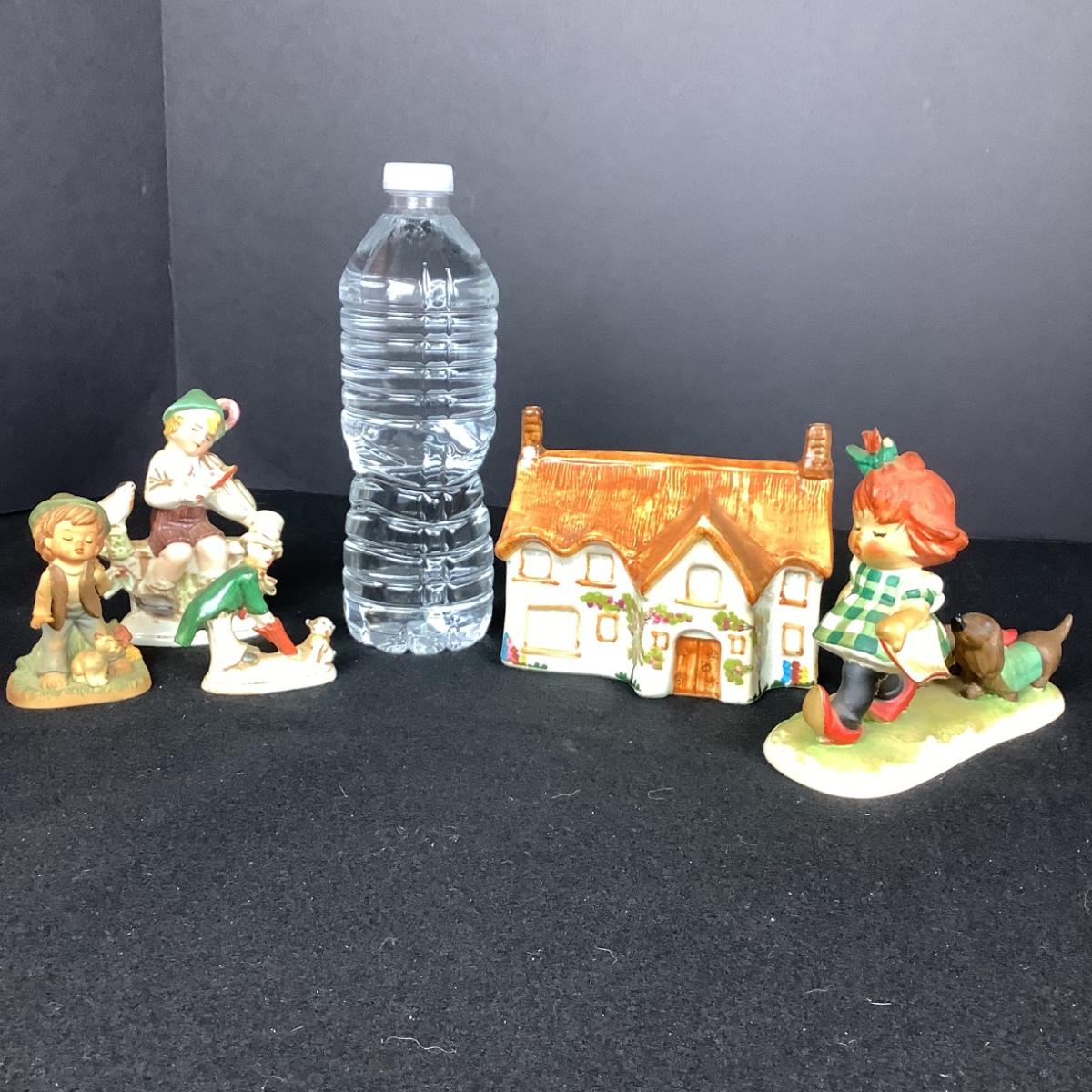 6316 Four Hummel Goelbel Figurines & Tony Raymond Cottage Coin Bank