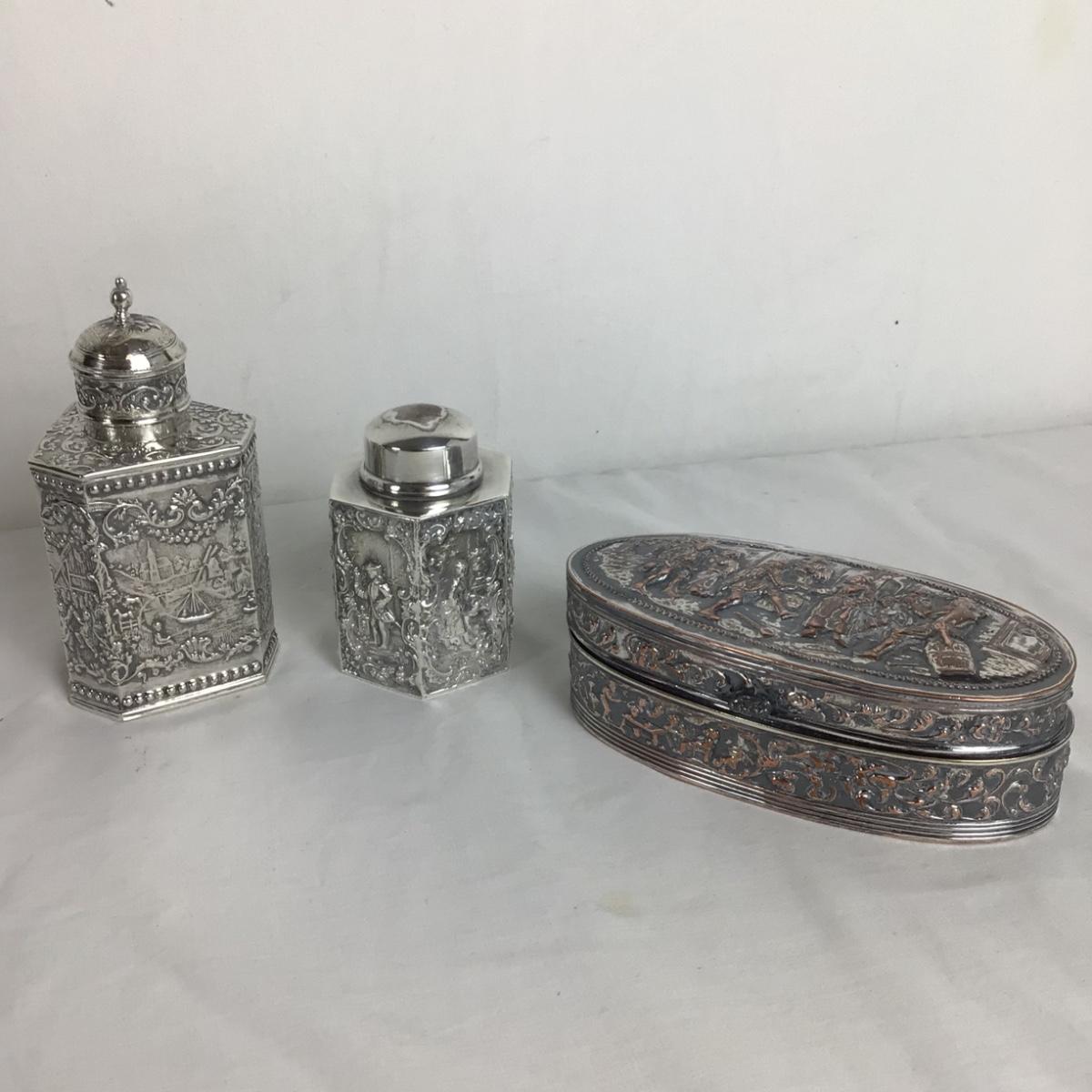 6318 Silver Plate Tea Caddy’s & Copper Over Silver Jewelry Box