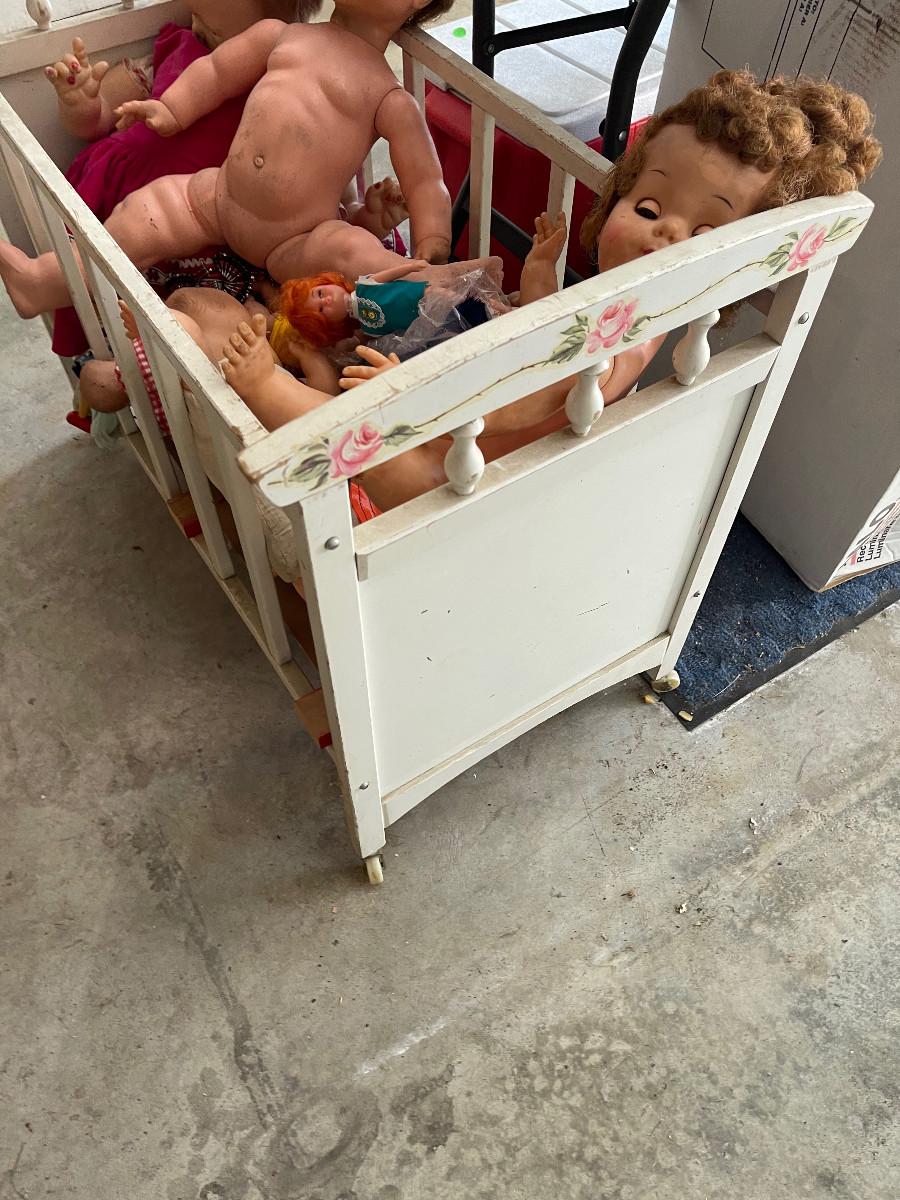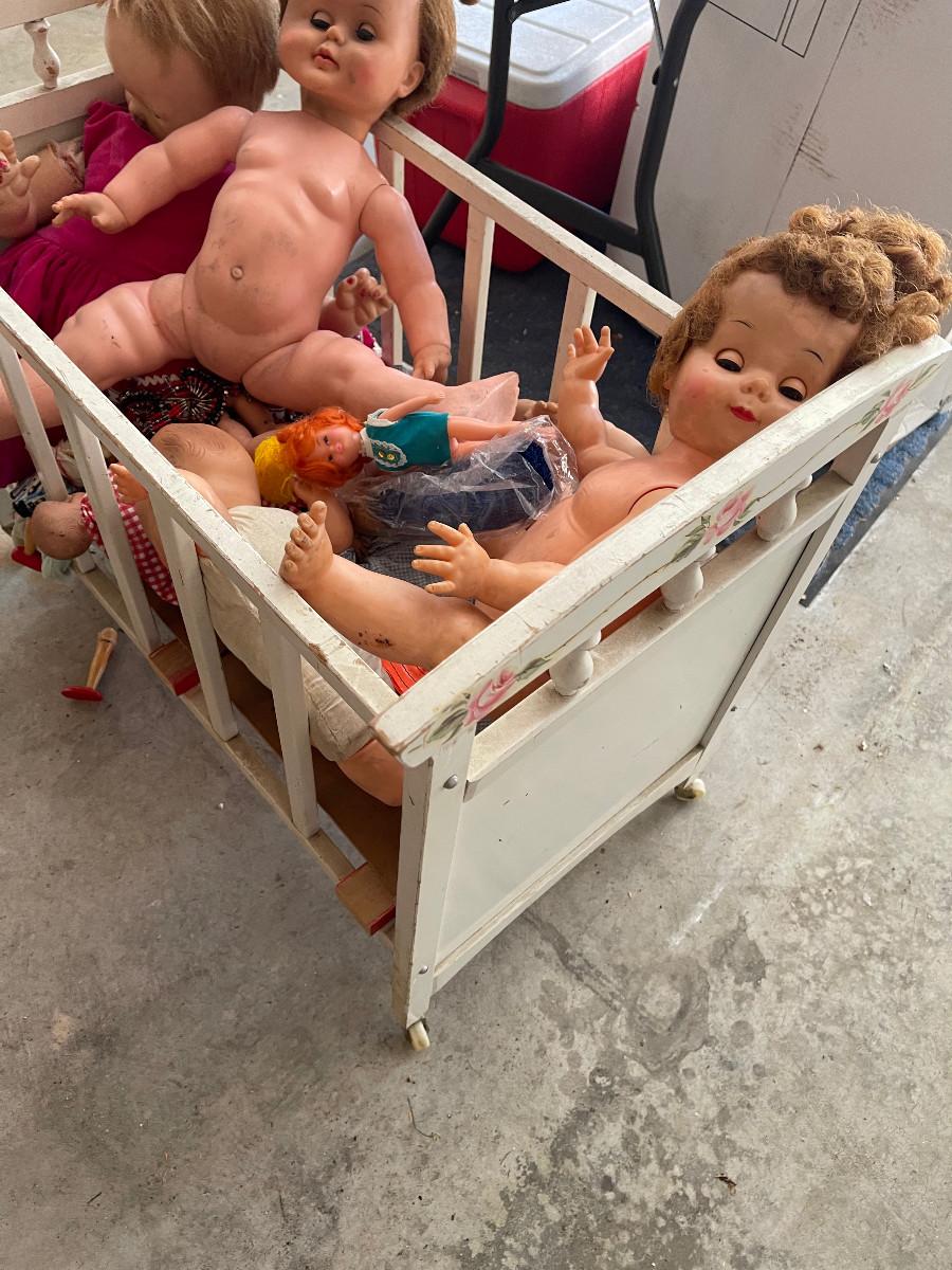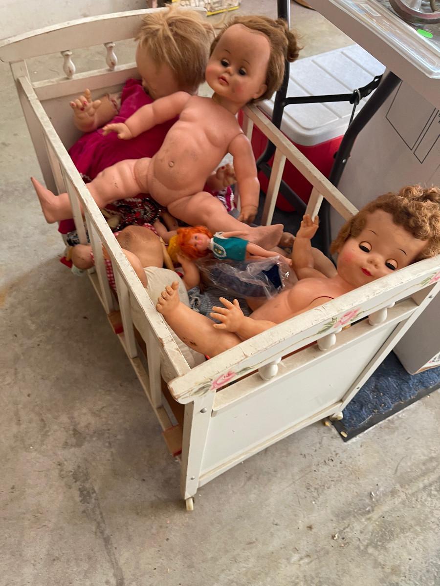#631G - Vintage Crib full of Antique Dolls