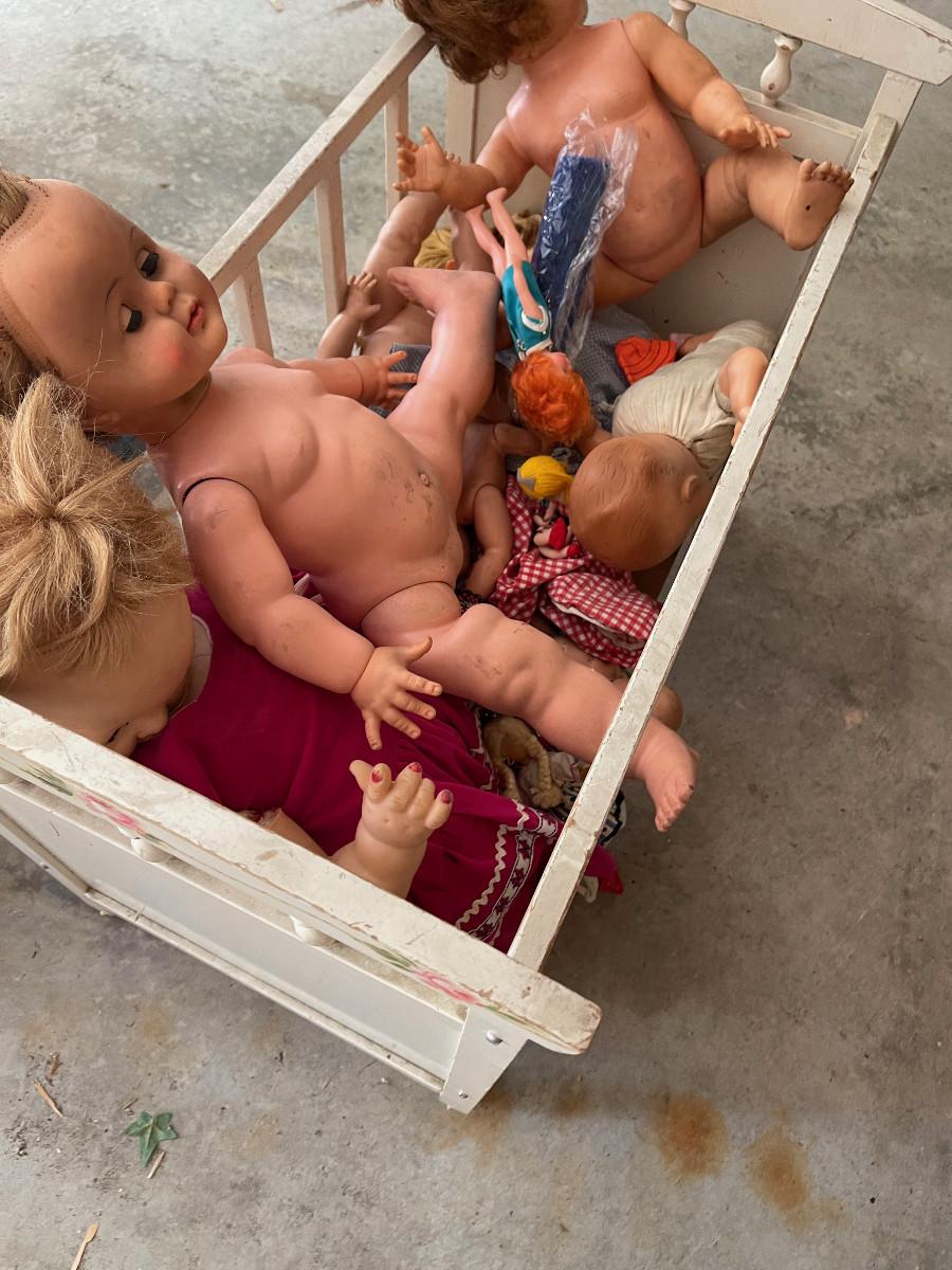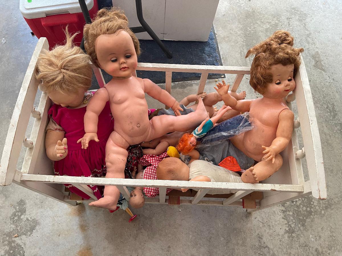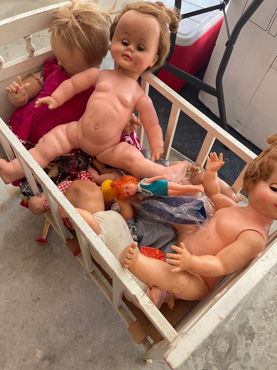 #631G - Vintage Crib full of Antique Dolls