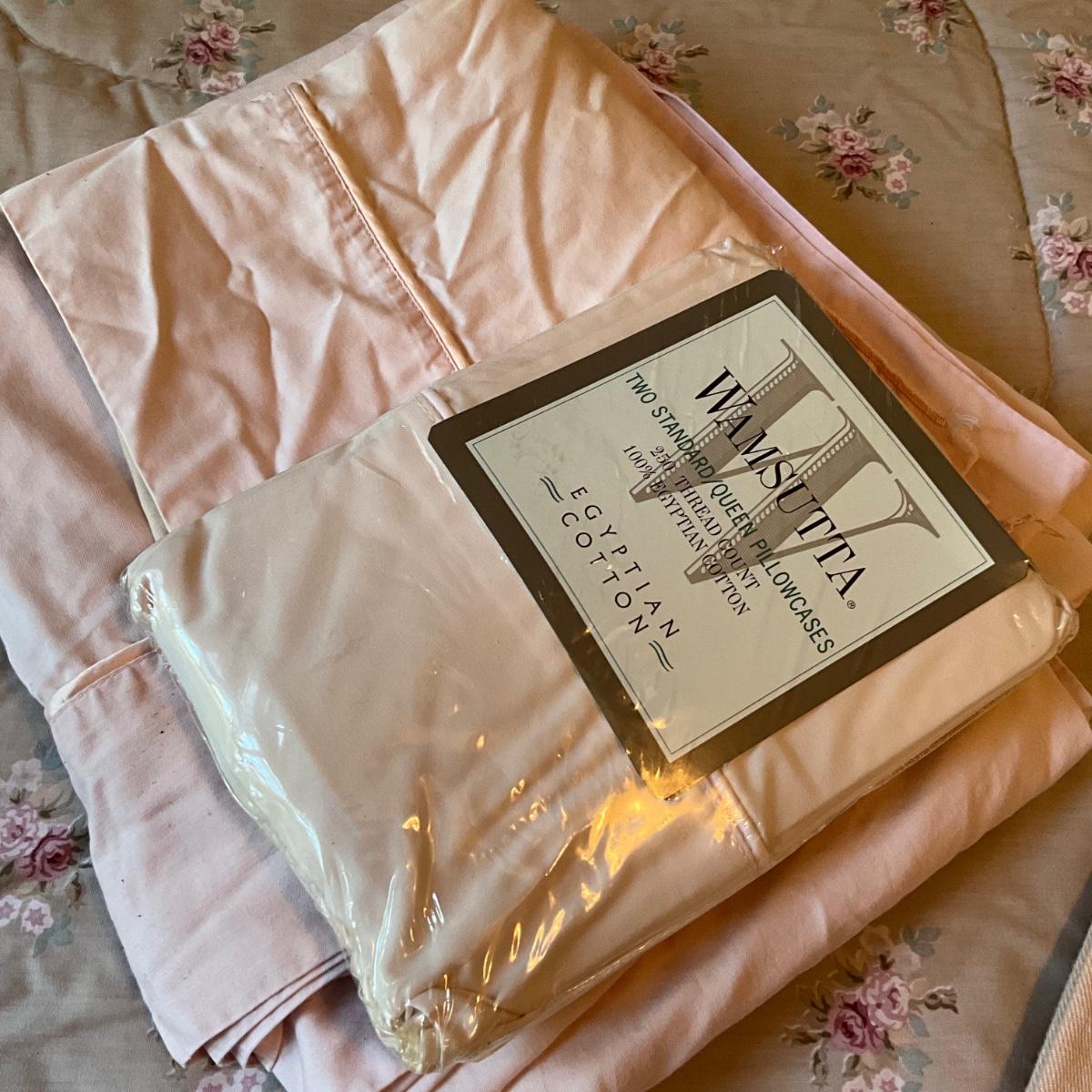 2 shams , bedskirt, comforter, floral throw, bolster pillow, with set of pink Wamsutta sheets , 2 pillow cases, 1 fitted and 1 flat sheet