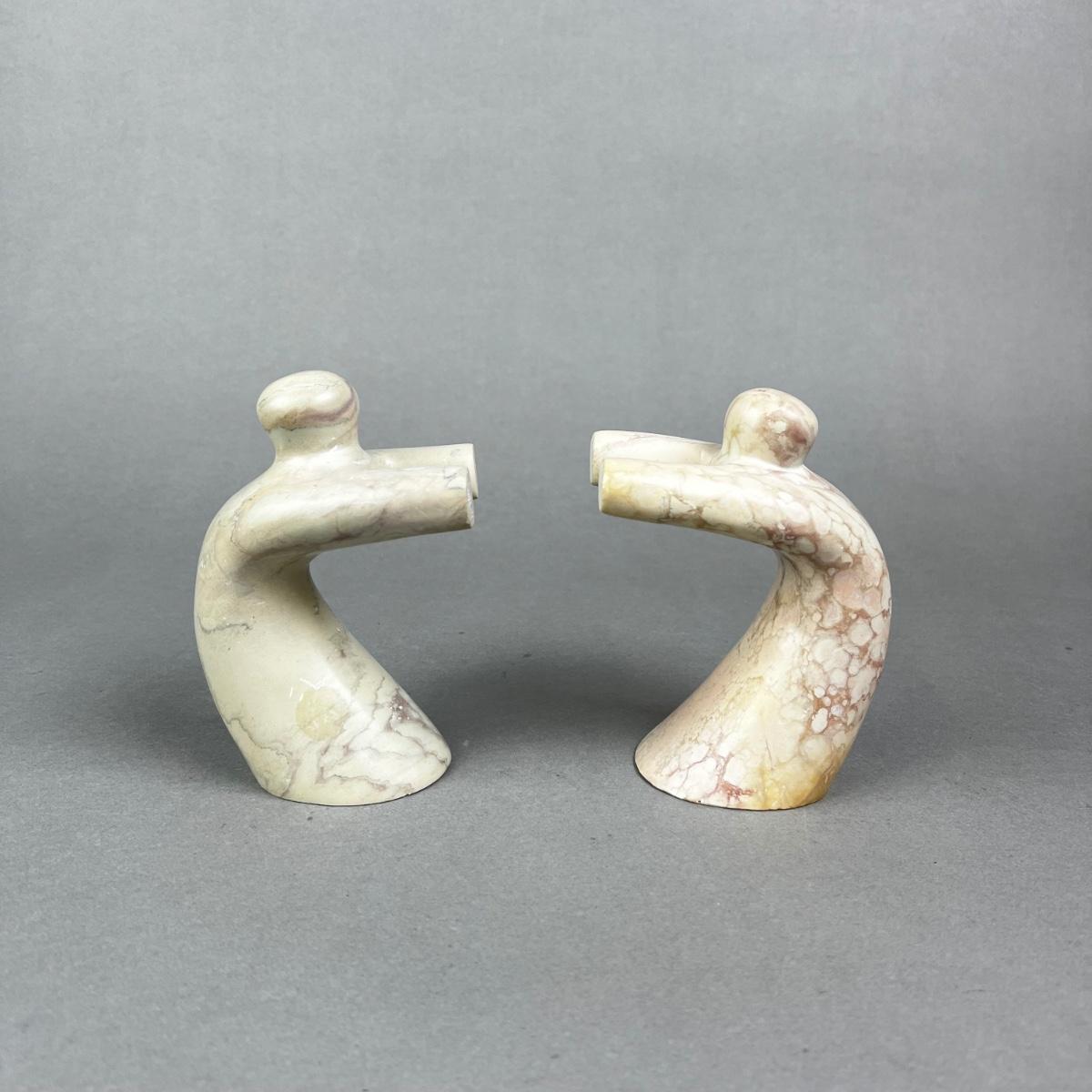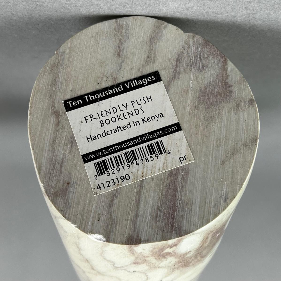 632 Ten Thousand Villages Handcrafted Stone "Friendly Push" Bookends