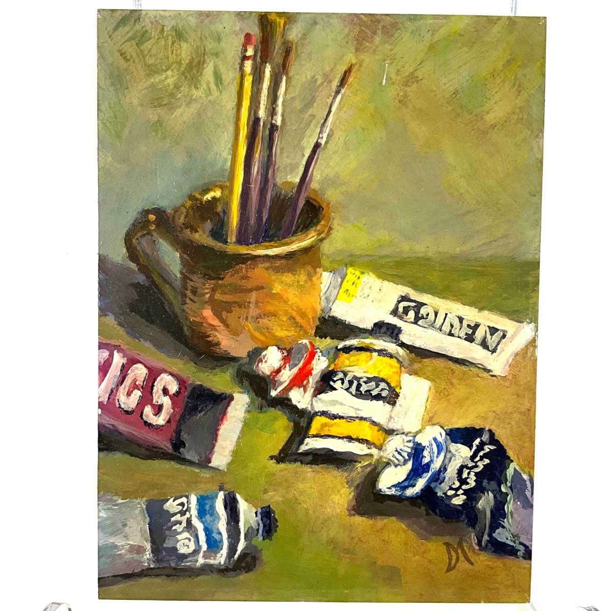 633 Original Acrylic Painting on Board "Artist's Tools" by Donna McGill 2002
