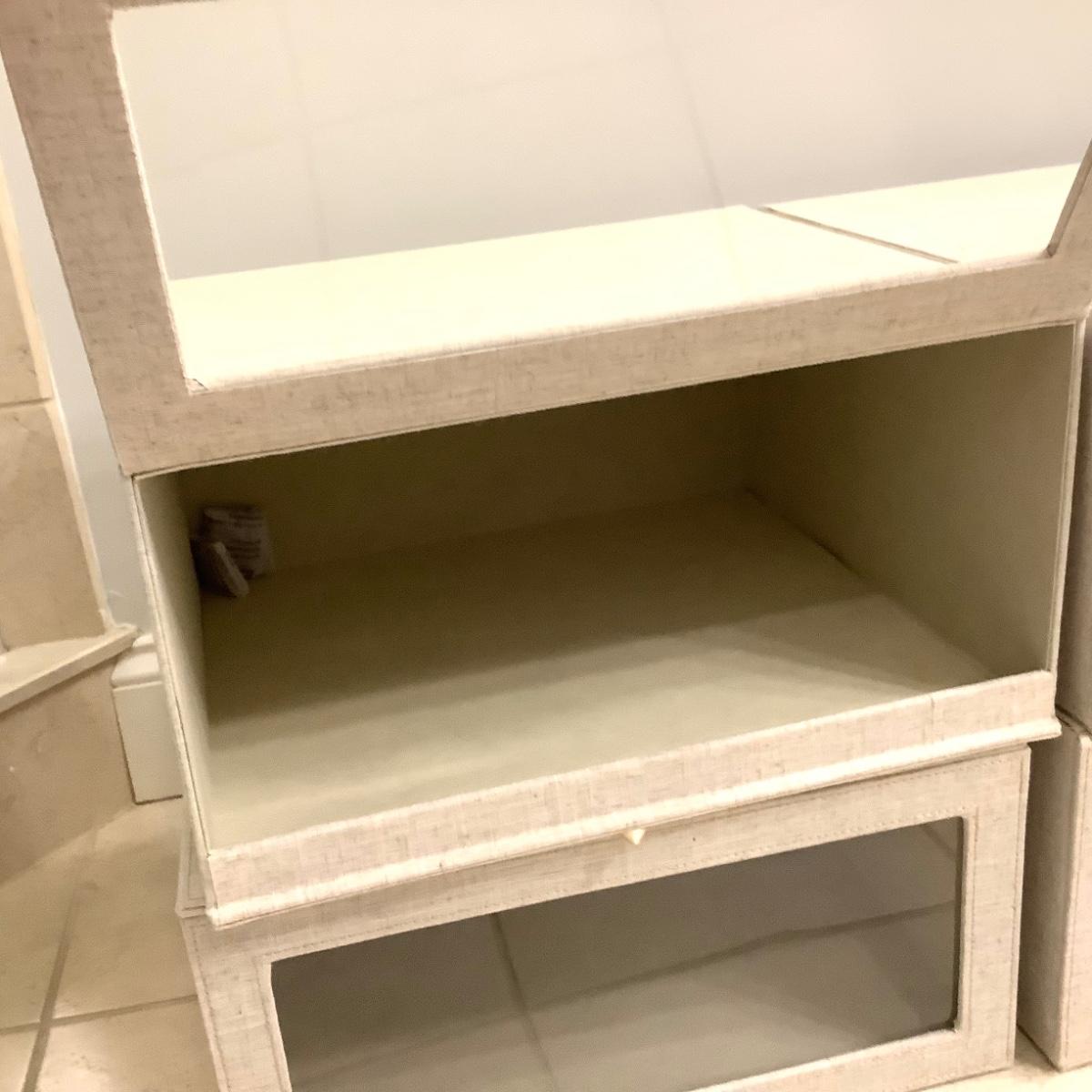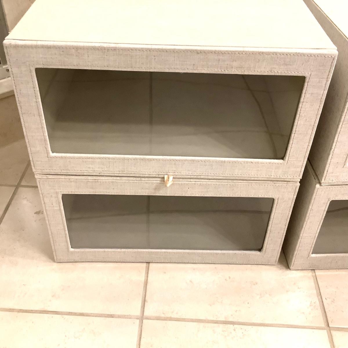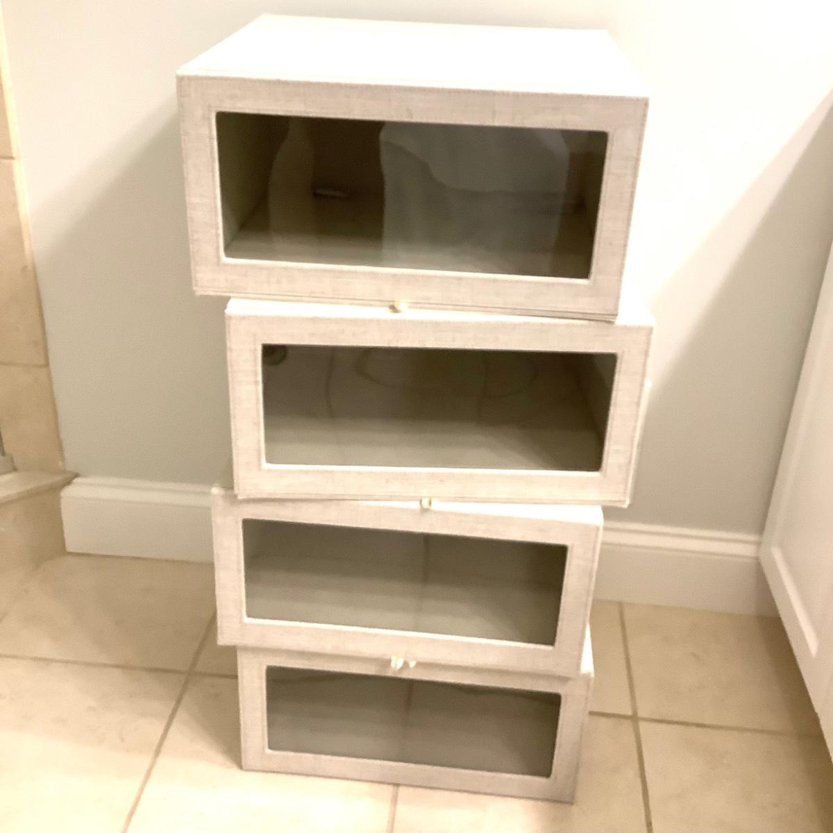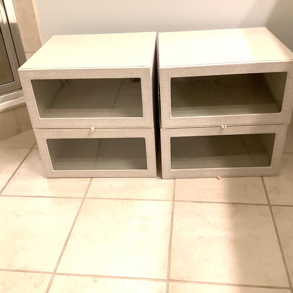 There are 4 storage boxes in this lot with magnetic closure and the measure 16" x 15" x 8".