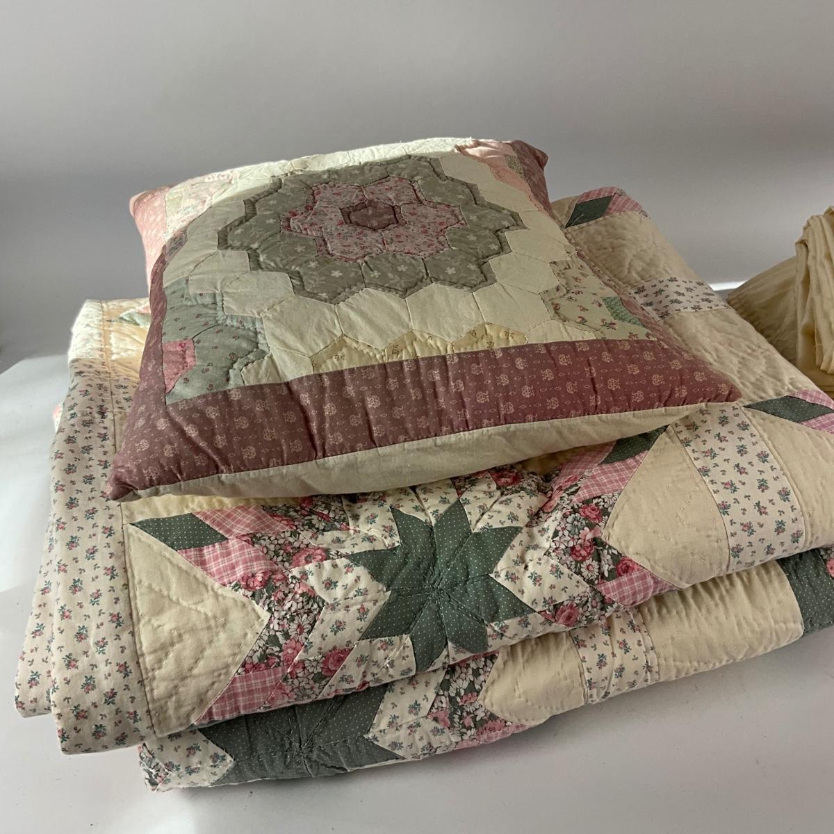 633 Two Vintage Twin ARCH QUILTS with Royal Satin Twin Sheet sets