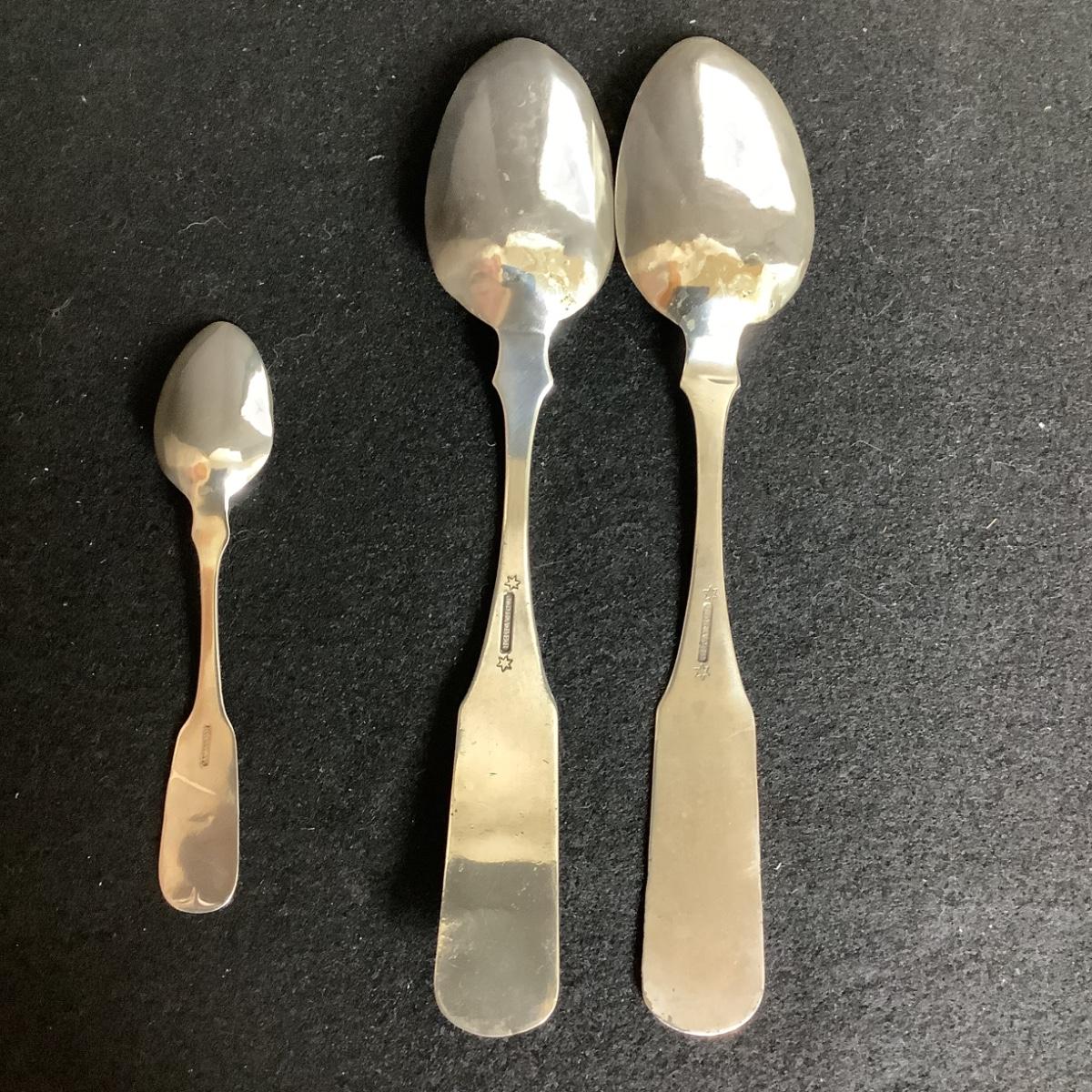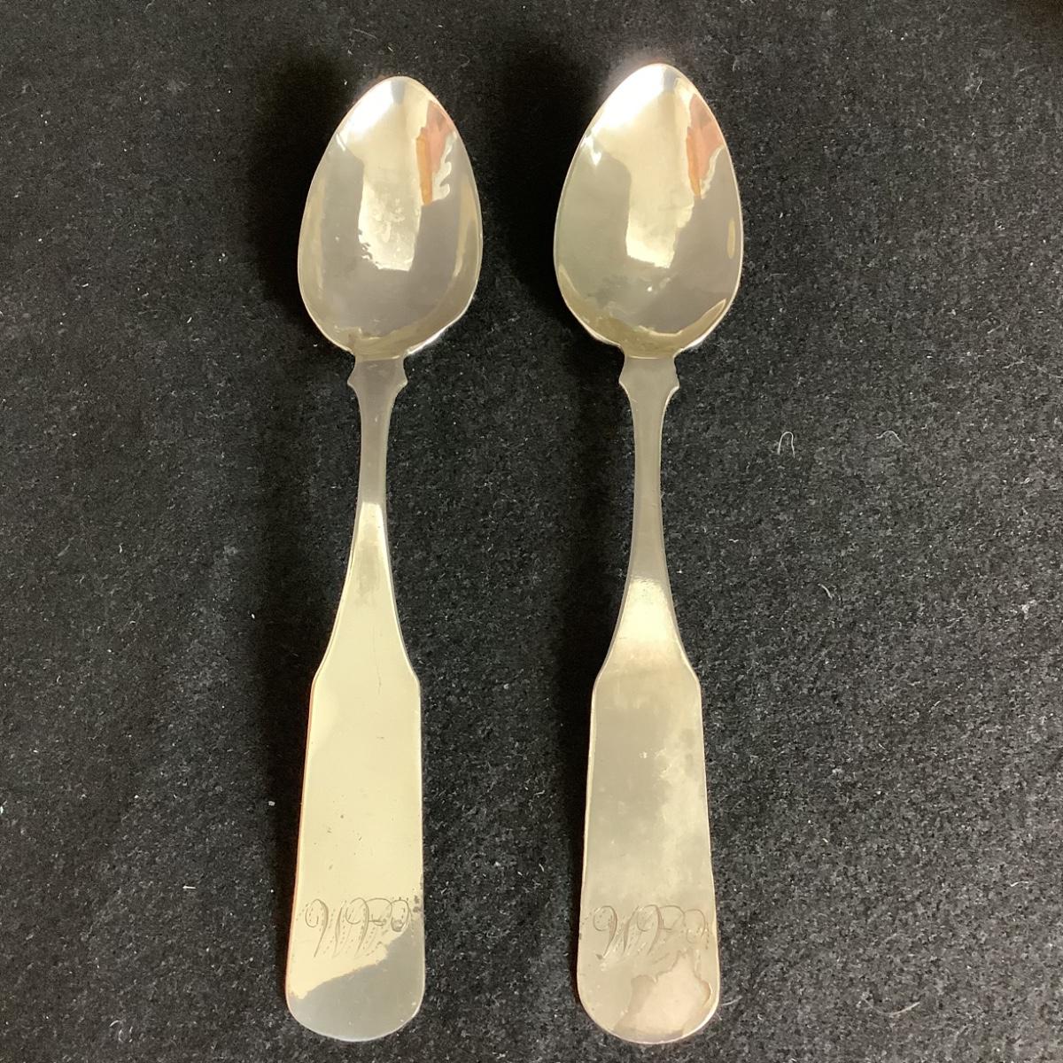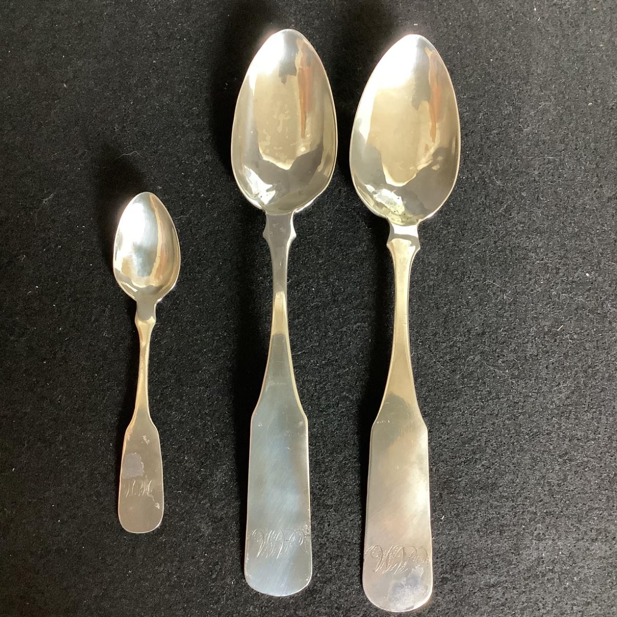 6332 Pair of Large Spoons Early Coin Silver J.Draper/Small R.W. Wilson Spoon Coin Silver