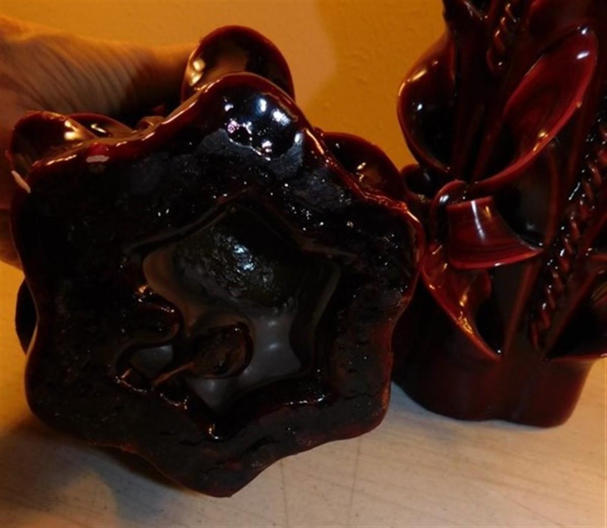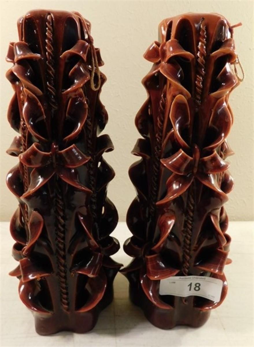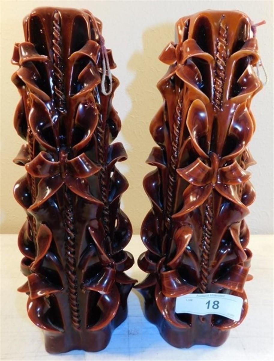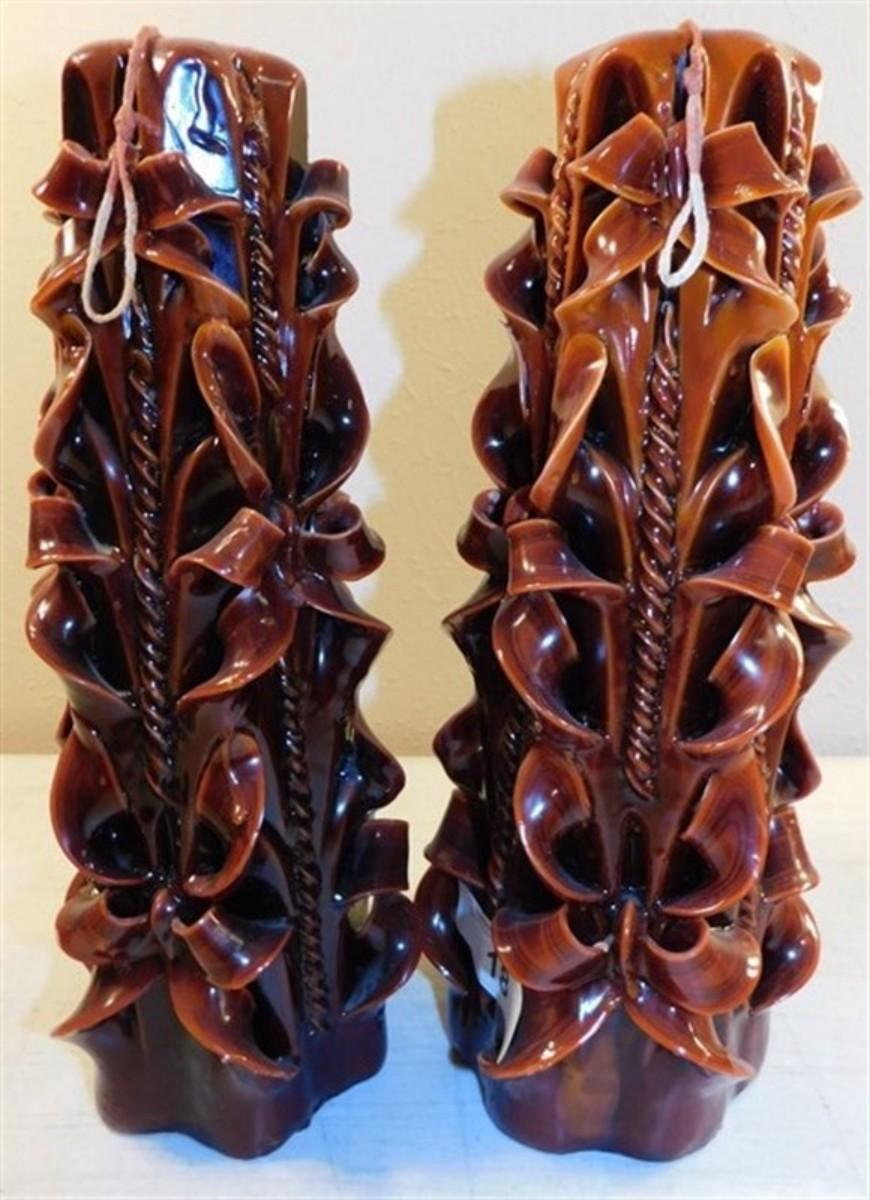 6337/18 Lot of 2 Vintage Carved Candles ~ Rusty Wooden Color 13"
