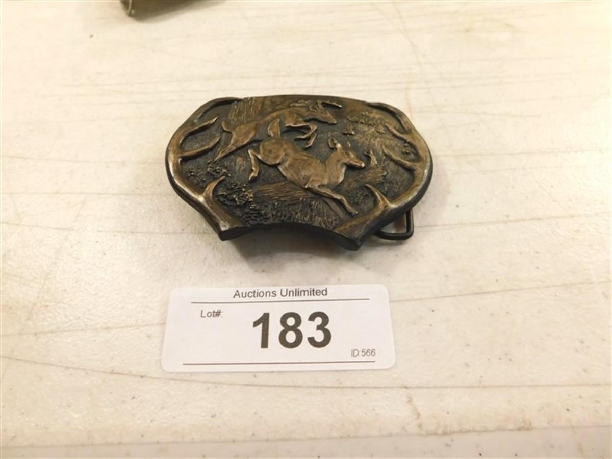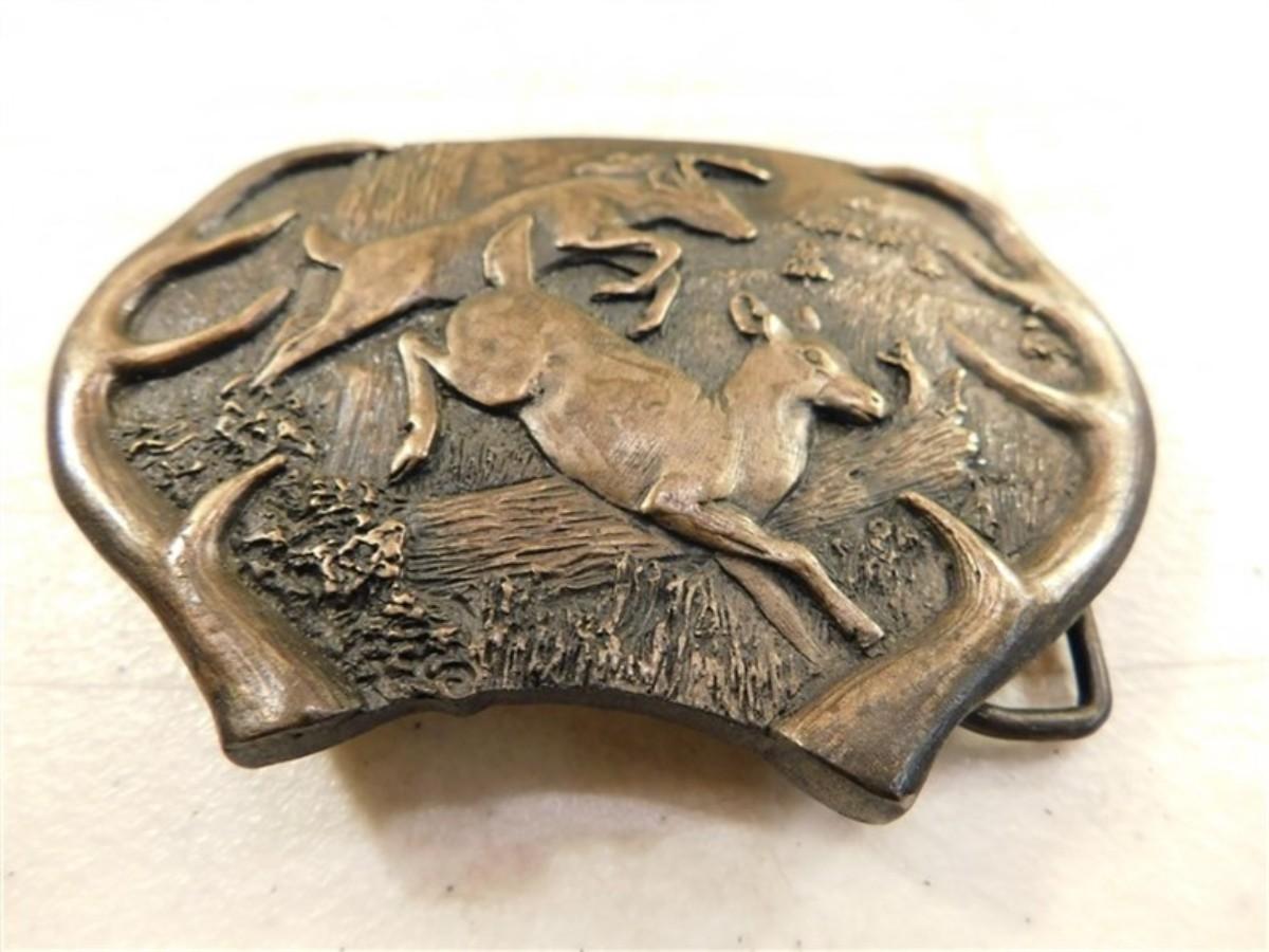 6337/183 Bergamot Brass Belt Buckle 1977 ~ Doe and Deer Running