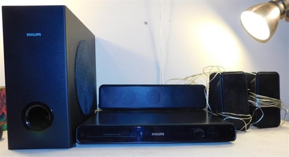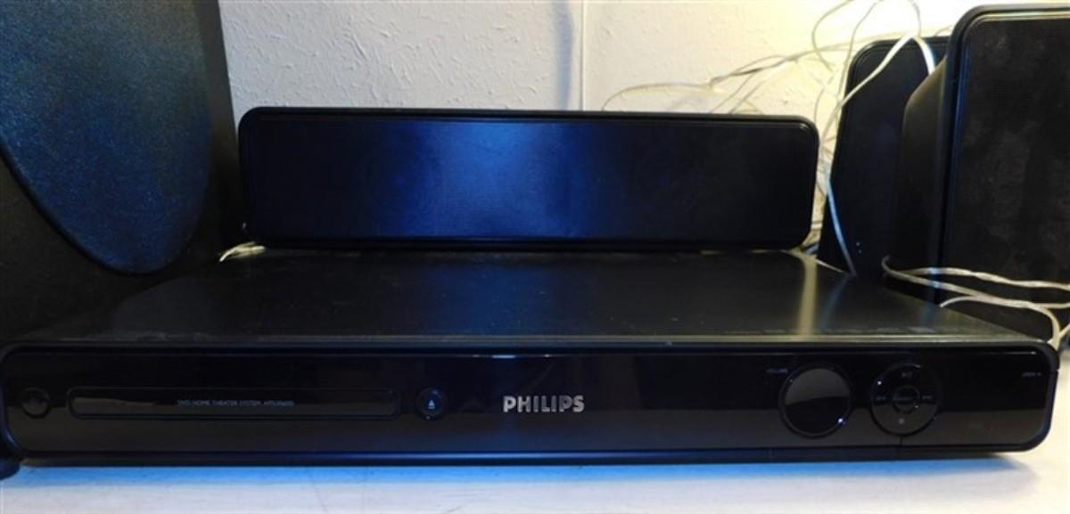 6337/199 Phillips DVD Theater System HT53565D ~ No Remote ~ DVD Player / Subwoofer / 5 Speakers ~ Powers Up