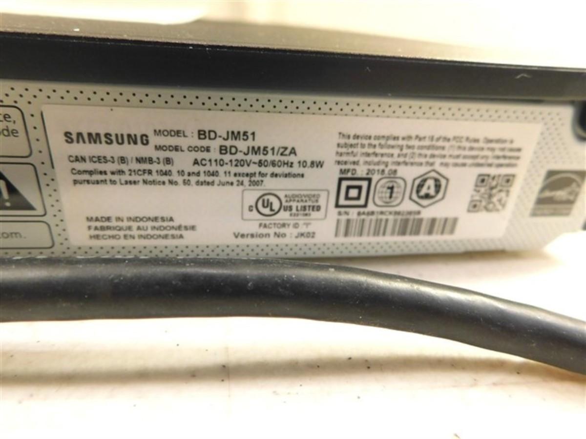 6337/200 Samsung BD-JM51/2A Blue Ray Disk Player ~ No Remote ~ Powers Up