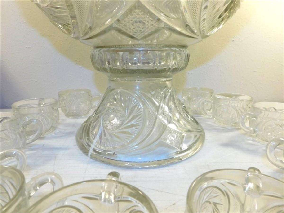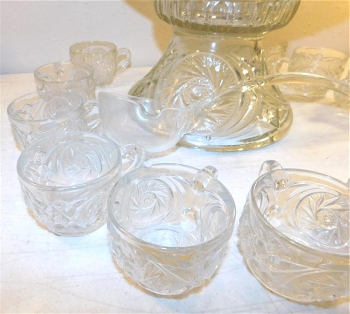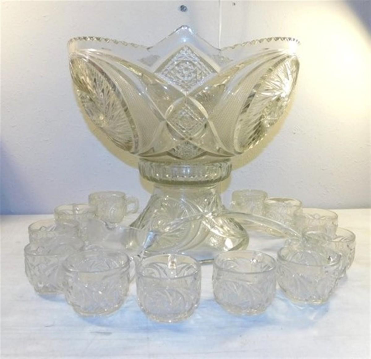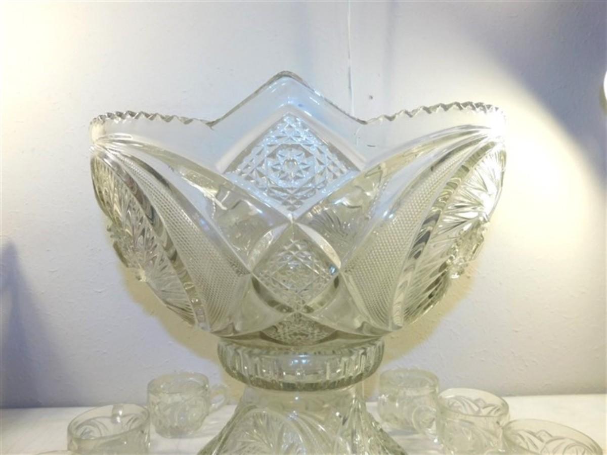 6337/207 Vintage 1980's LE Smith Aztec Punch Bowl on Pedestal ~ 13" with Pedestal ~ 12 Cups and Glass Ladle
