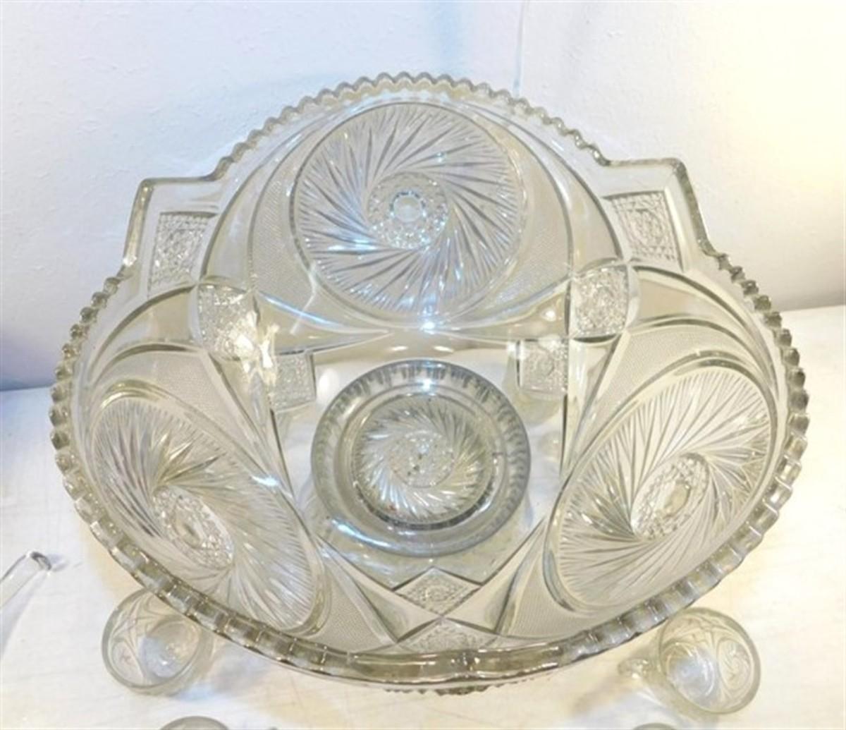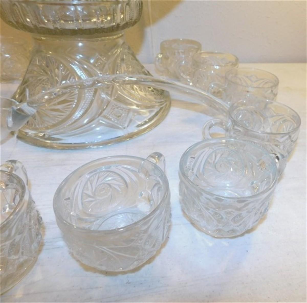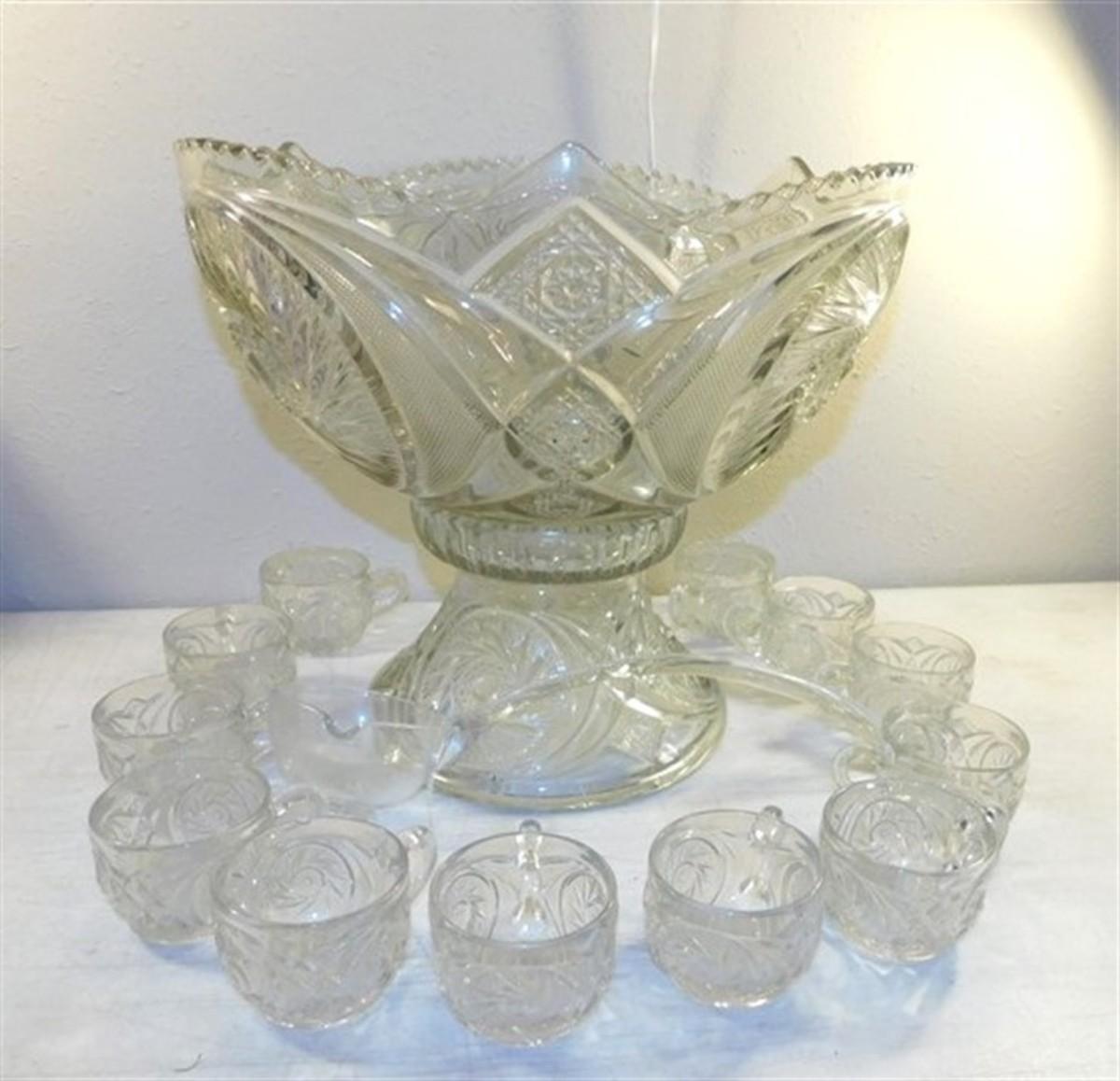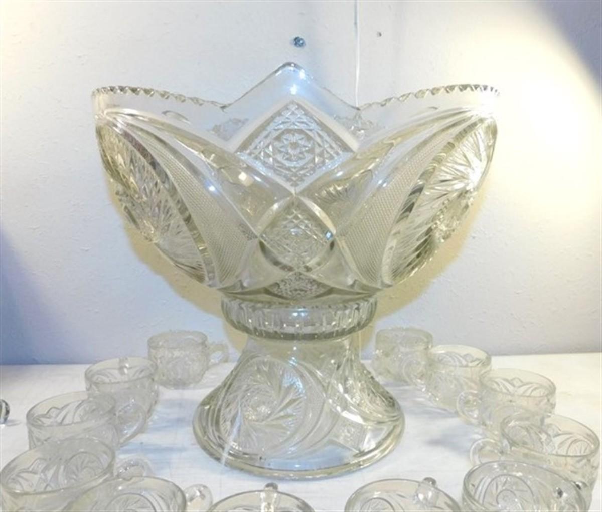 6337/207 Vintage 1980's LE Smith Aztec Punch Bowl on Pedestal ~ 13" with Pedestal ~ 12 Cups and Glass Ladle