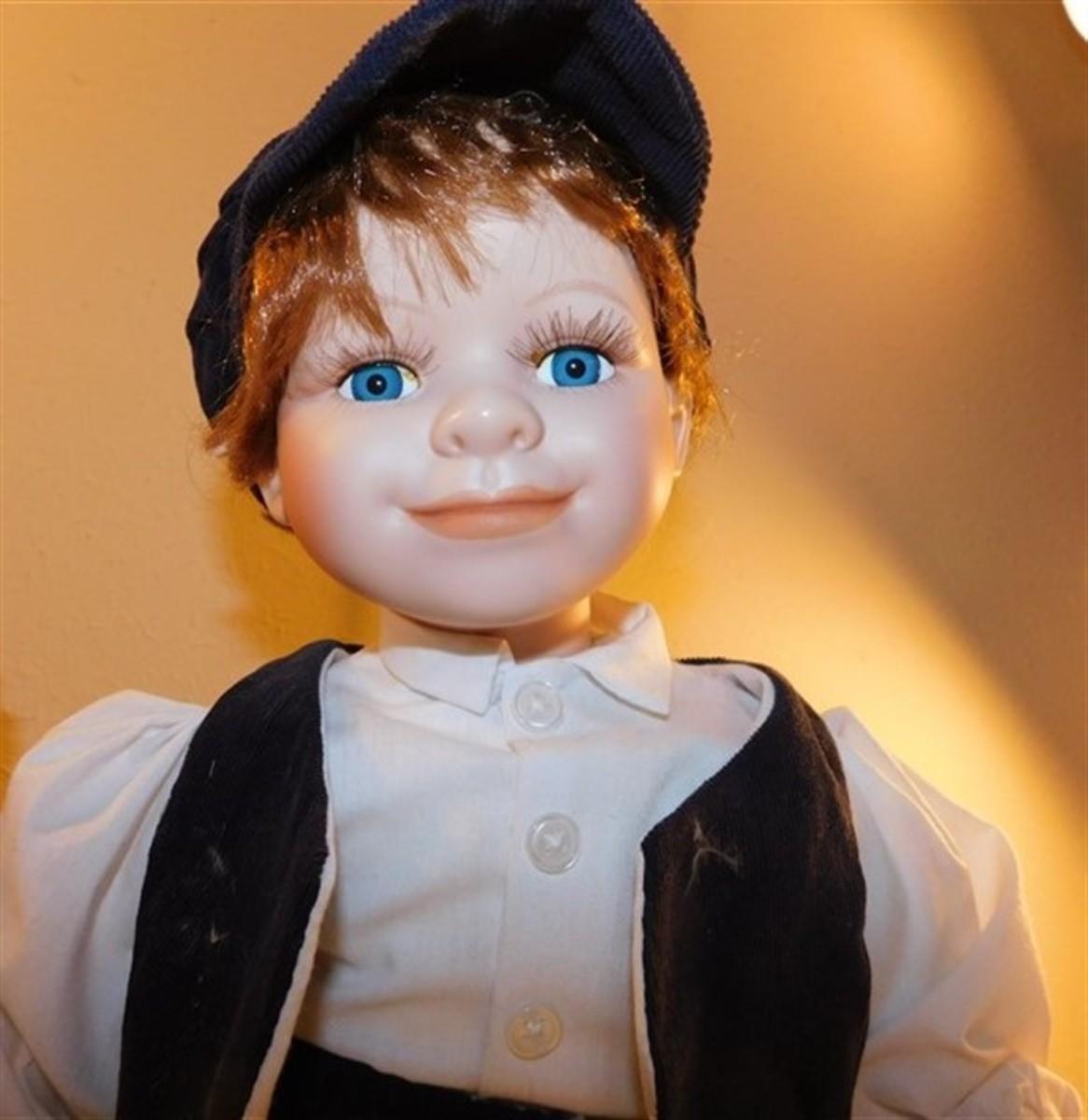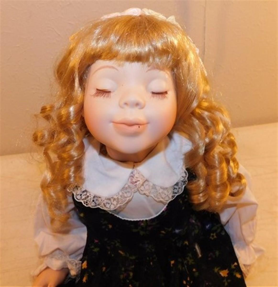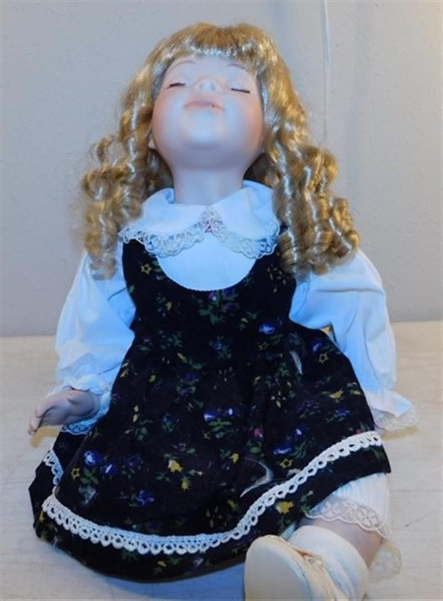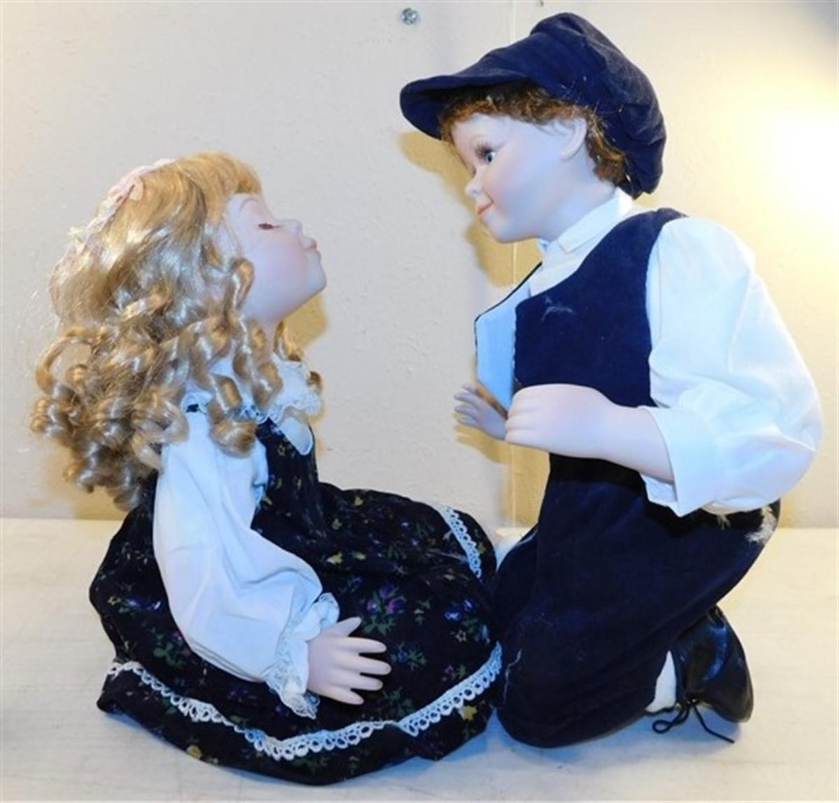 6337/229 Lot of 3 Porcelain Dolls ~ 15-19" Tall ~ Purple Dress and First Kiss Dolls