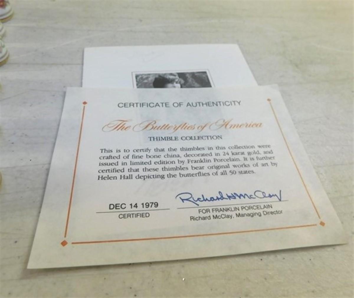 6337/230 Helen Hall Limited Edition 1979 ~ Franklin Porcelain Thimbles ~ The Butterflies of America ~ 50 pieces