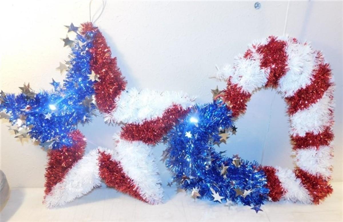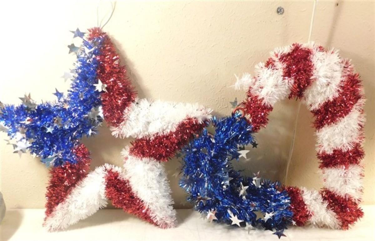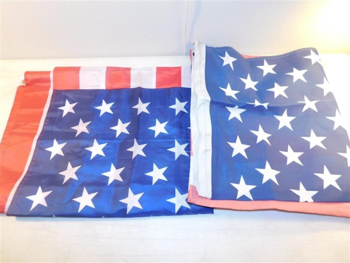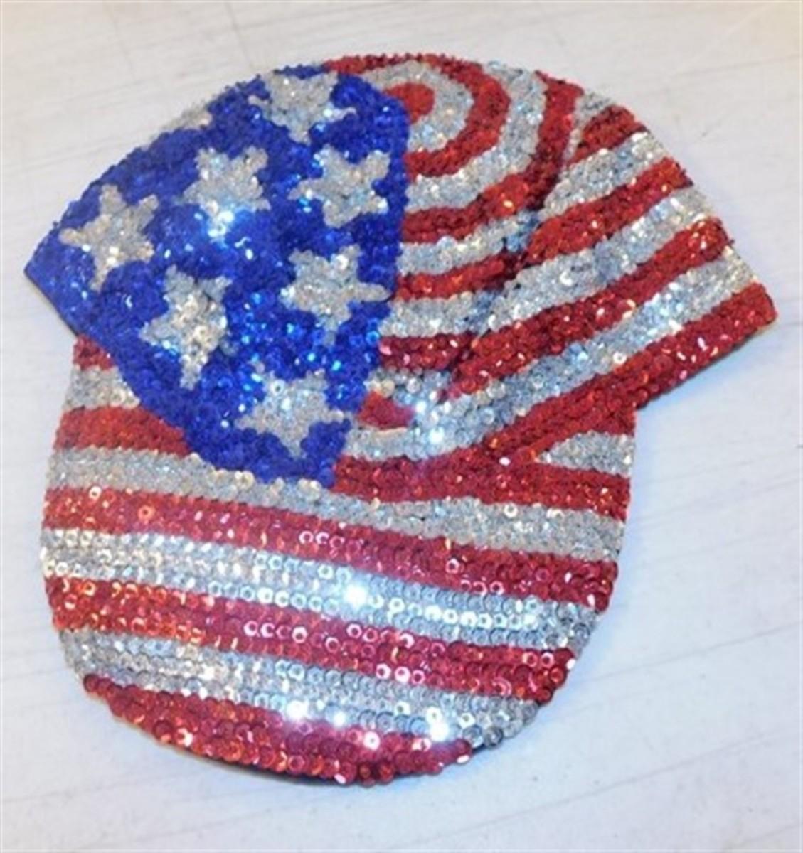 6337/288 Lot of Red White and Blue Decorations ~ Large Redhead Small Spot / Sequin Hat / Extra Large Fashion Vest / Flag 57" x 34" / Flag 60" x 36"