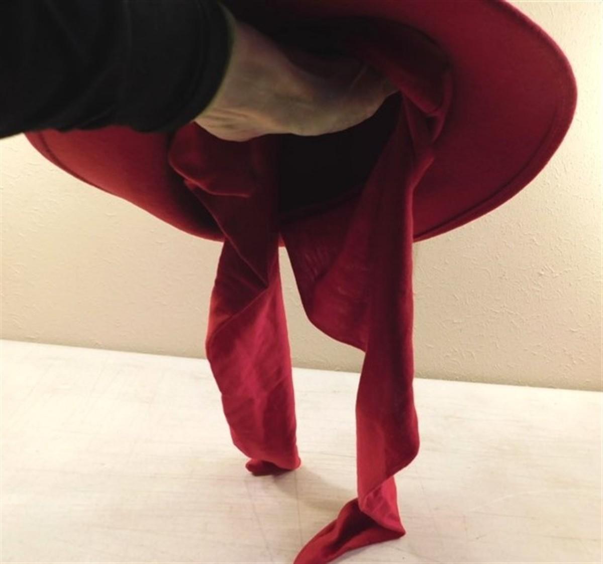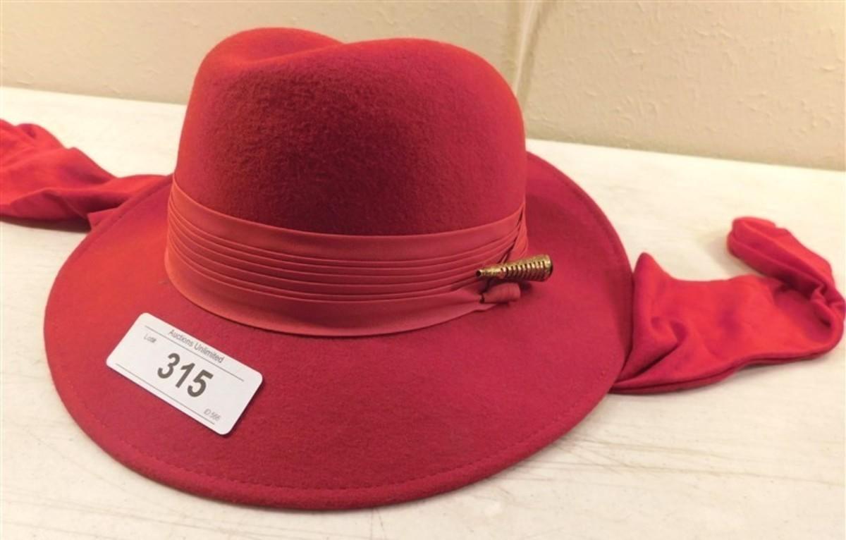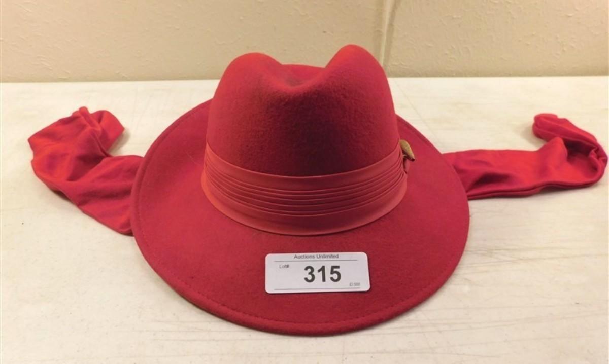 6337/315 Red Hat with Built in Scarf ~ Gold tone Pin