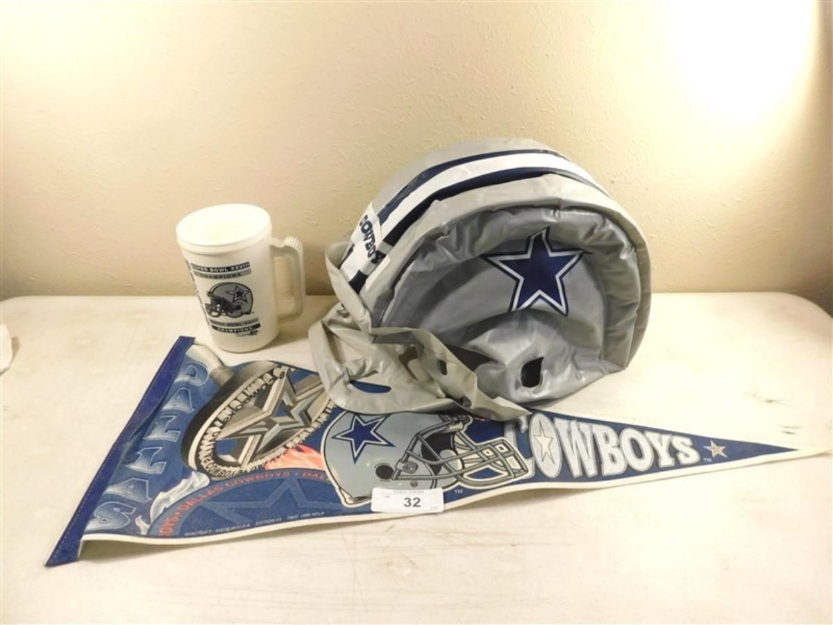 6337/32 Dallas Cowboys Lot ~ Pennant / Mug / Air Up Helmet ( Wont Hold Air)