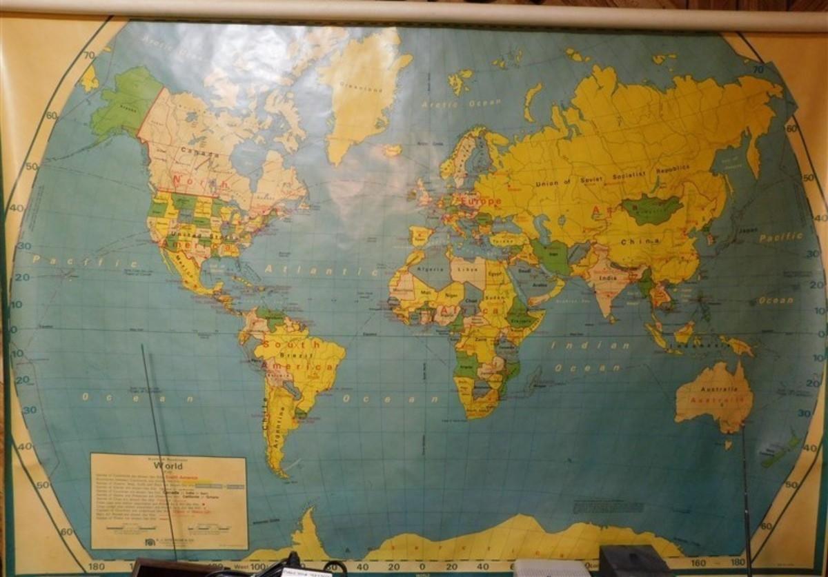 6337/53 Vintage Rolled Map By Nystrom Readiness World Map