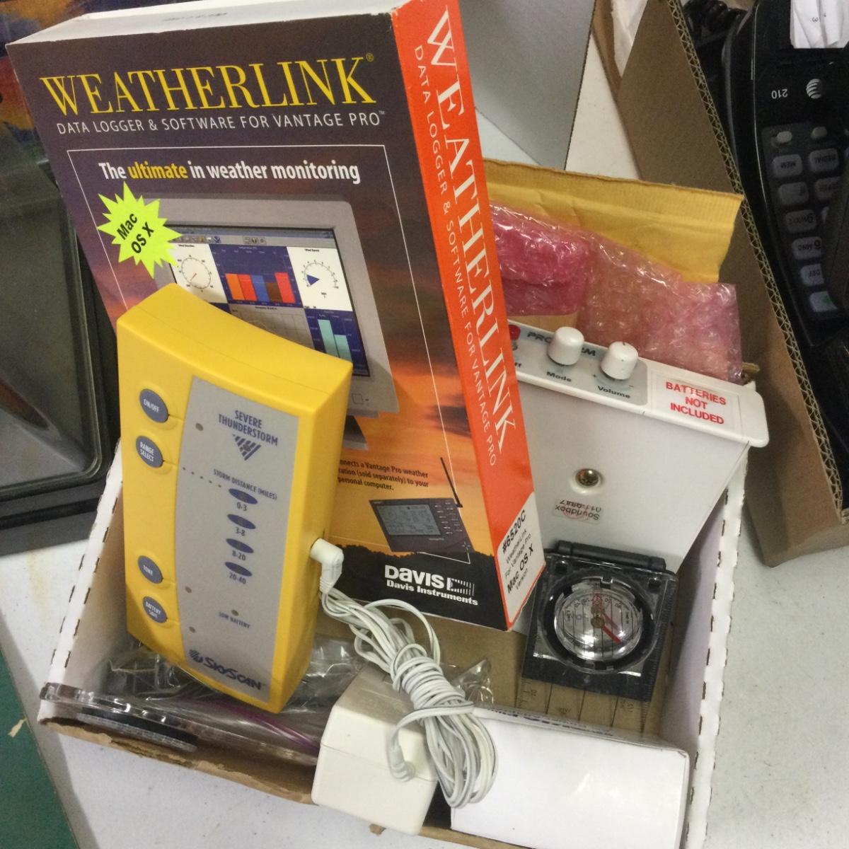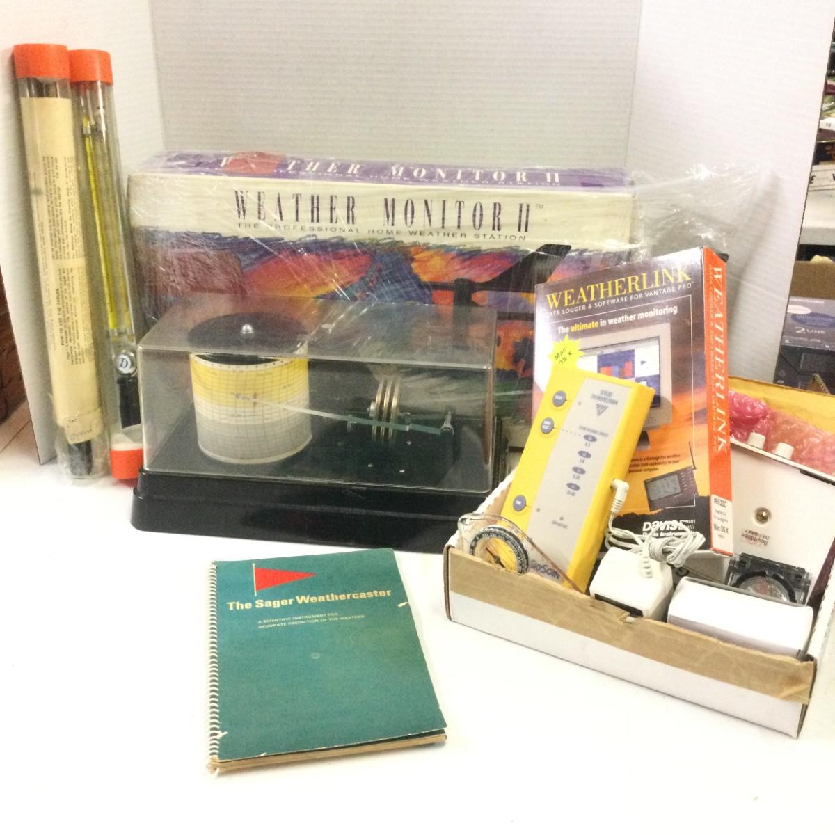 Several vintage weather tools, taylor barograph, weather link program, weather monitor and much more