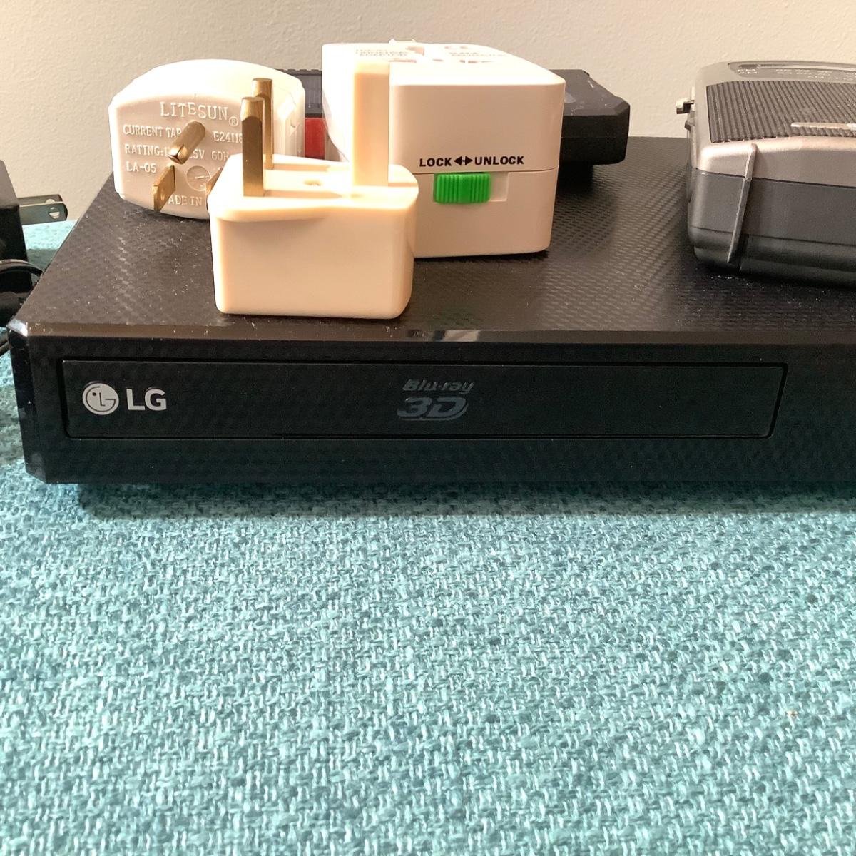 637 LG Blue Ray DVD Player Lot Travel Adapters Radio Solar Charger