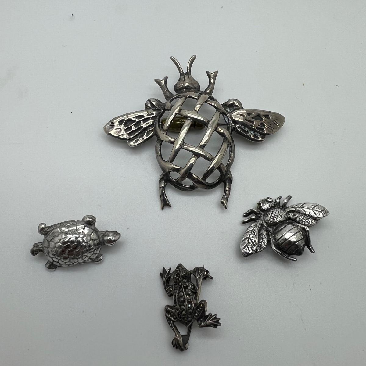 Set of 4 sterling silver pins