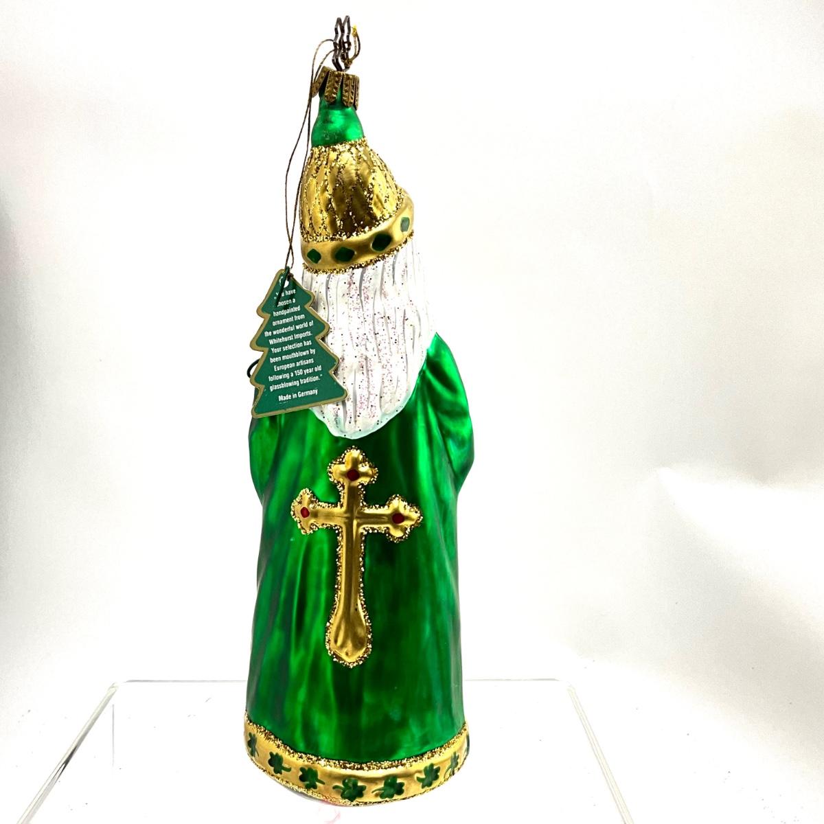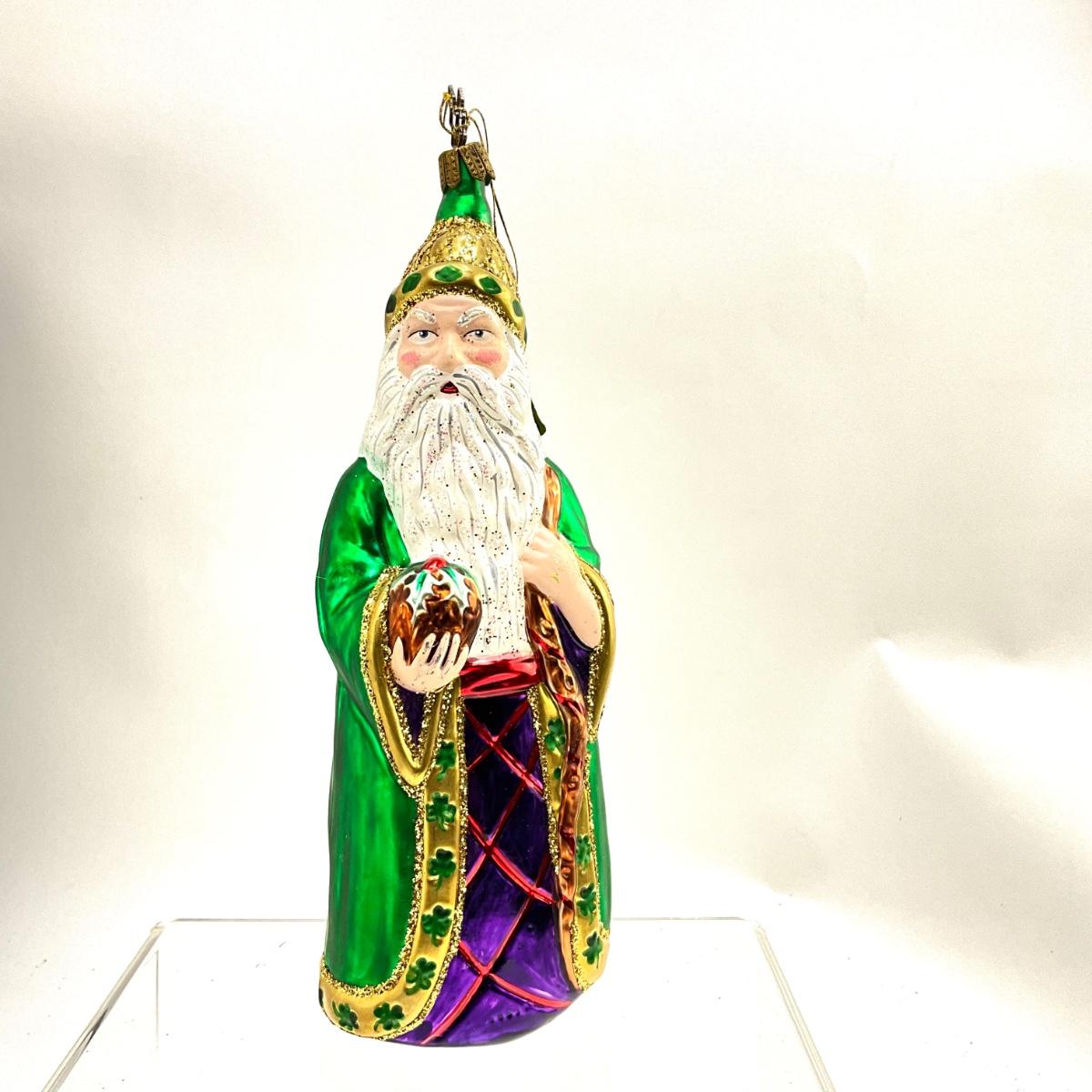 638 Large 8" Whitehurst Glass Blown Green Magical Santa Ornament