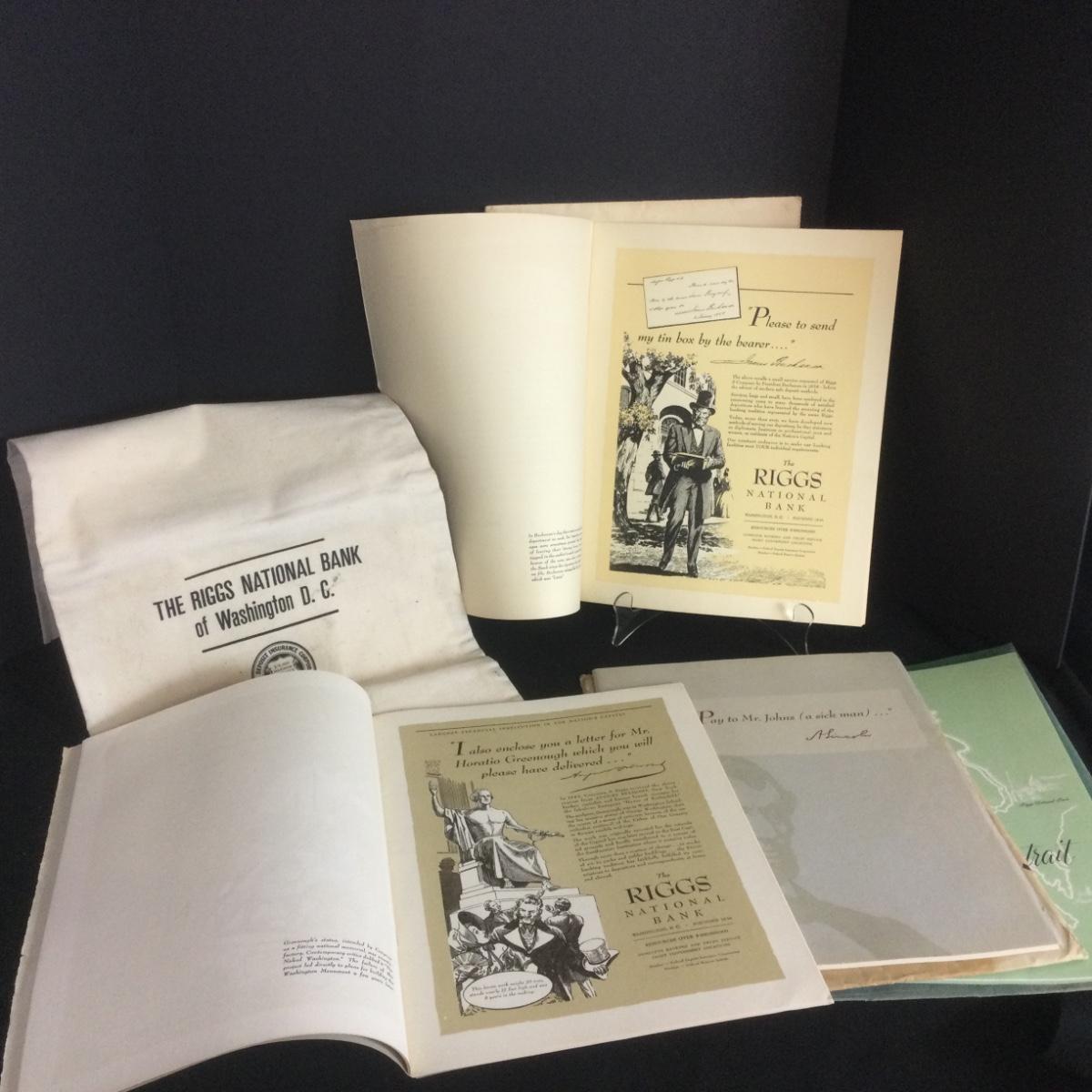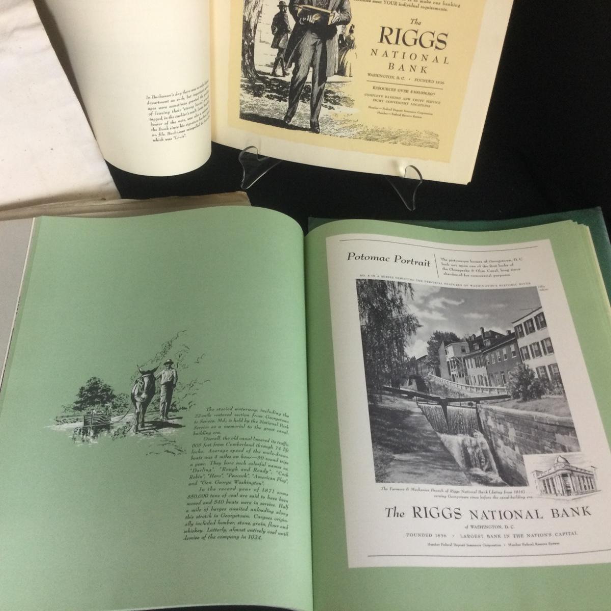 Four booklets of Potomac Riggs advertisements and canvas bags