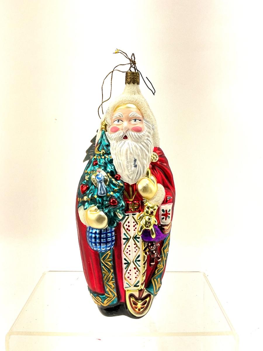 639 Large 8" Whitehurst Hand Blown Glass Ornament Red Santa