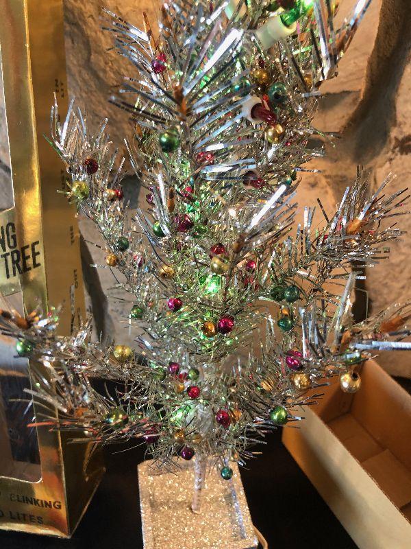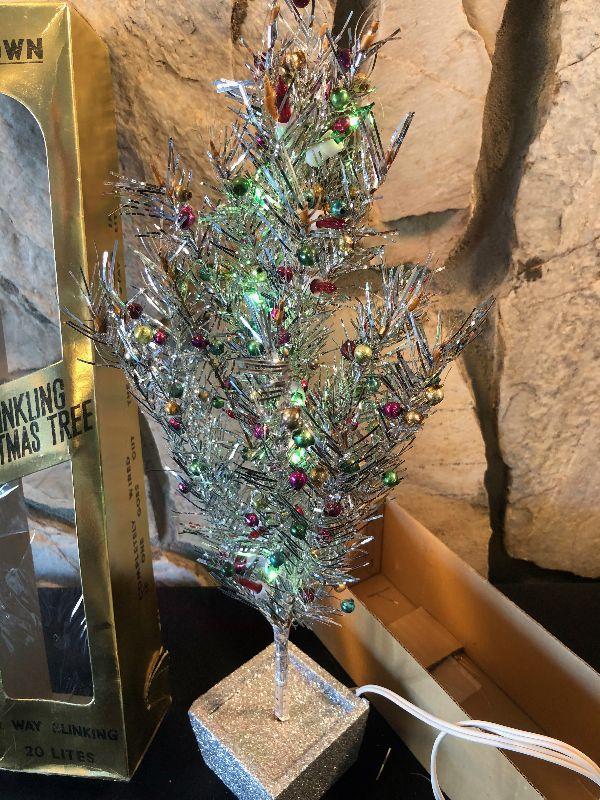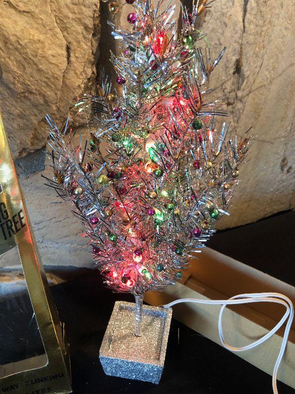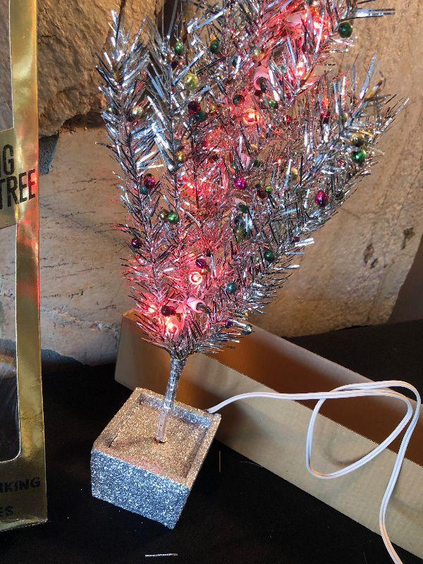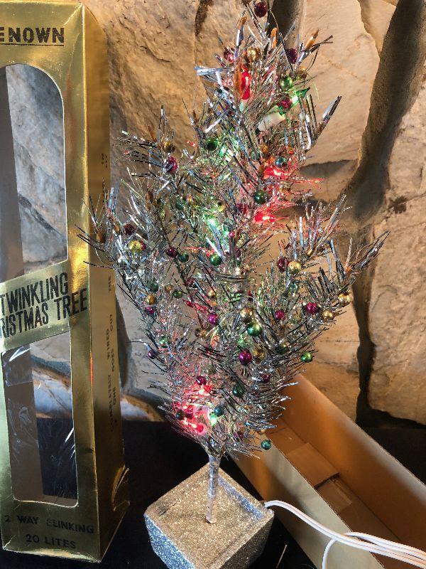 Does Light Up - alternates between red and green lights, a bit fragile 21" Tall In Original Box