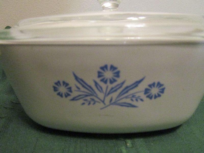 Pyrex bowl with lid 2 qt,used good condition; Corning Ware Blue Cornflower 1.5 quart dish with lid in new condition