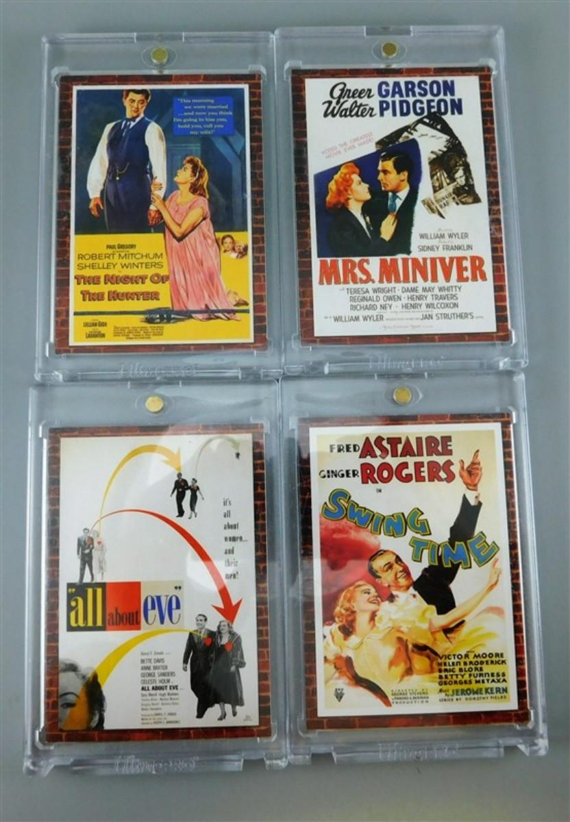64 Donruss Swatch of Material From Famous Movies- All About Eve / Swing Time / The Night of the Hunter / Mrs. Miniver