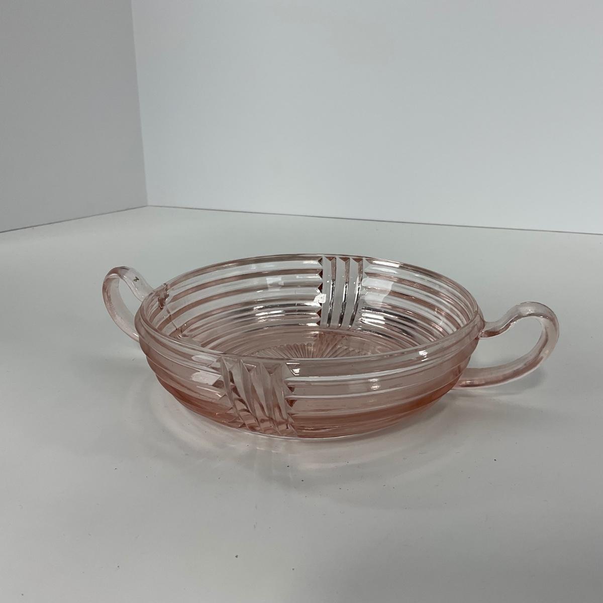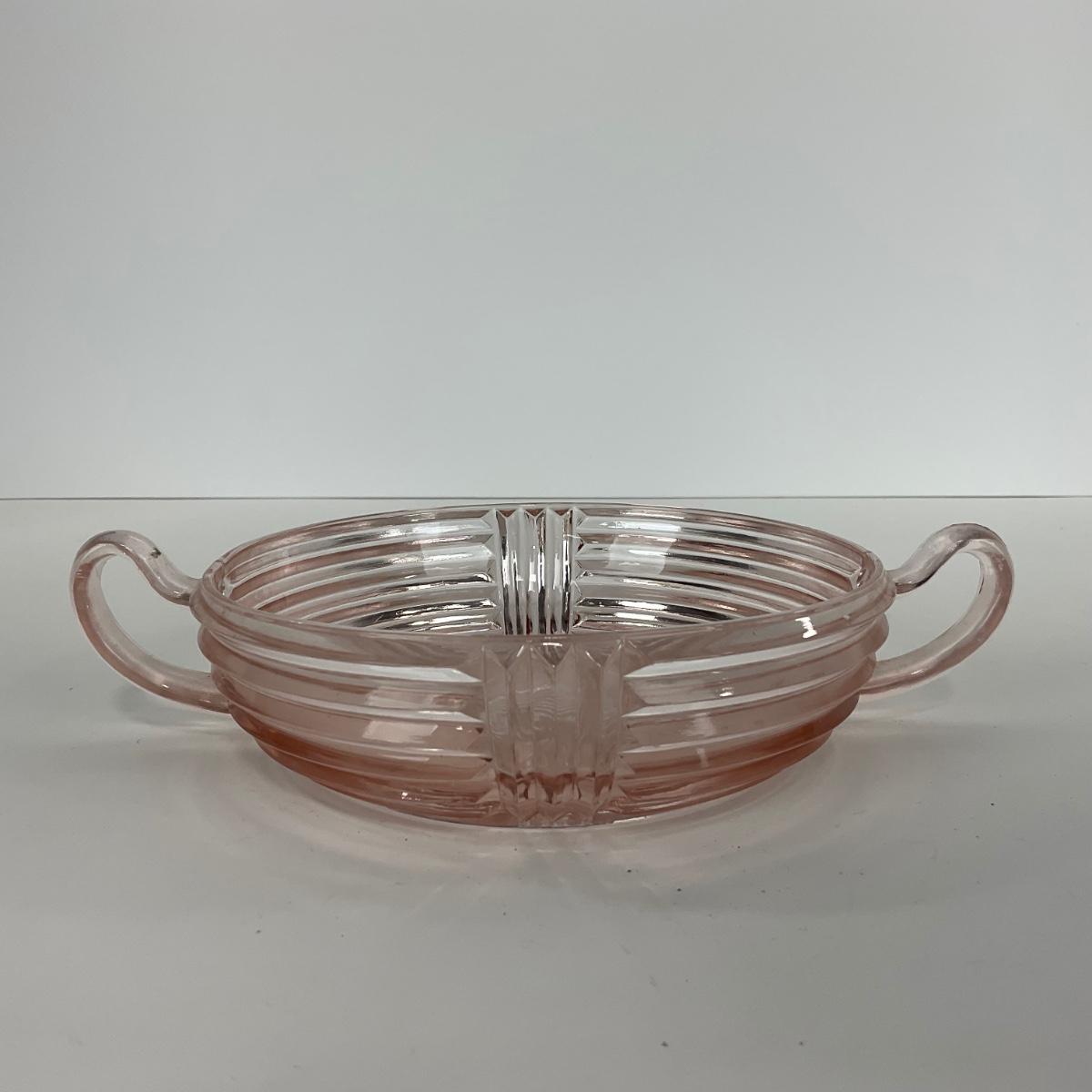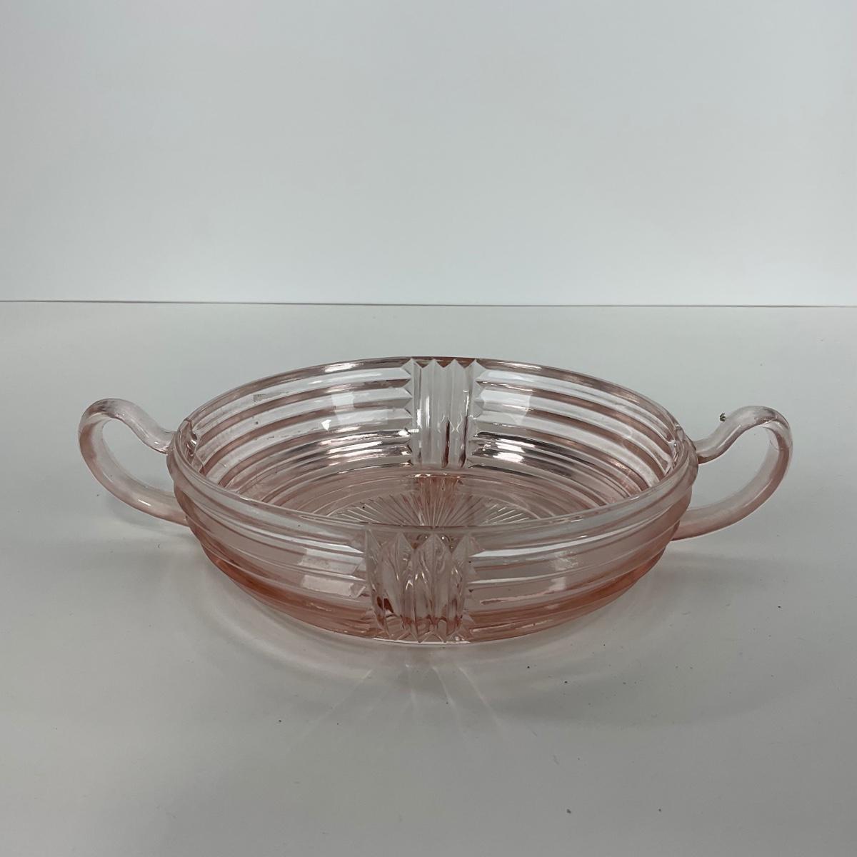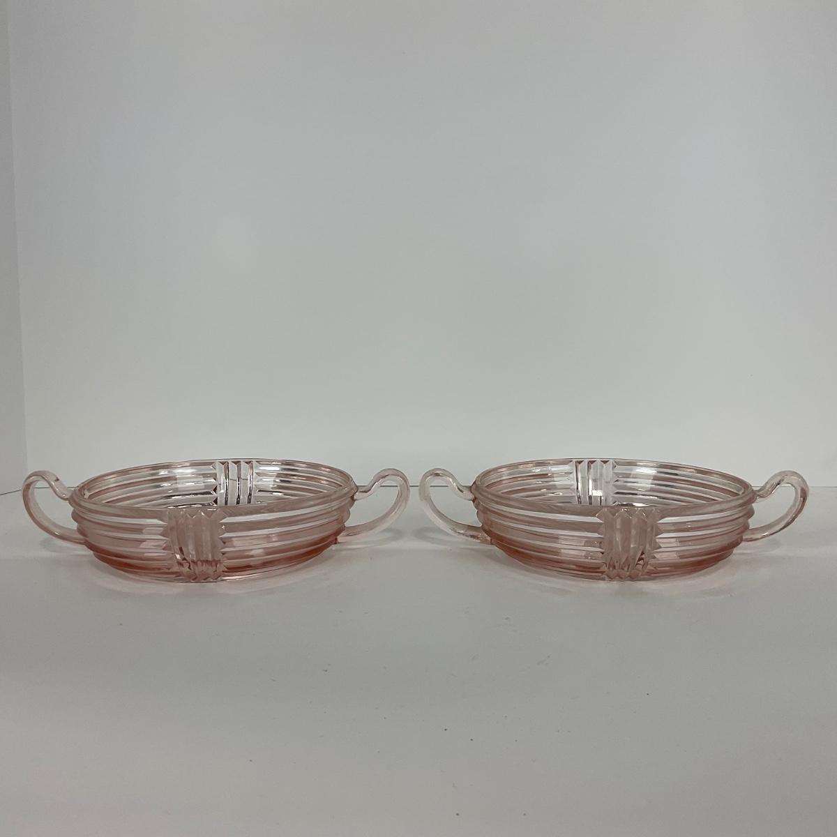 -64- GLASSWARE | Anchor Hocking Pink | Two Handled Relish Bowls