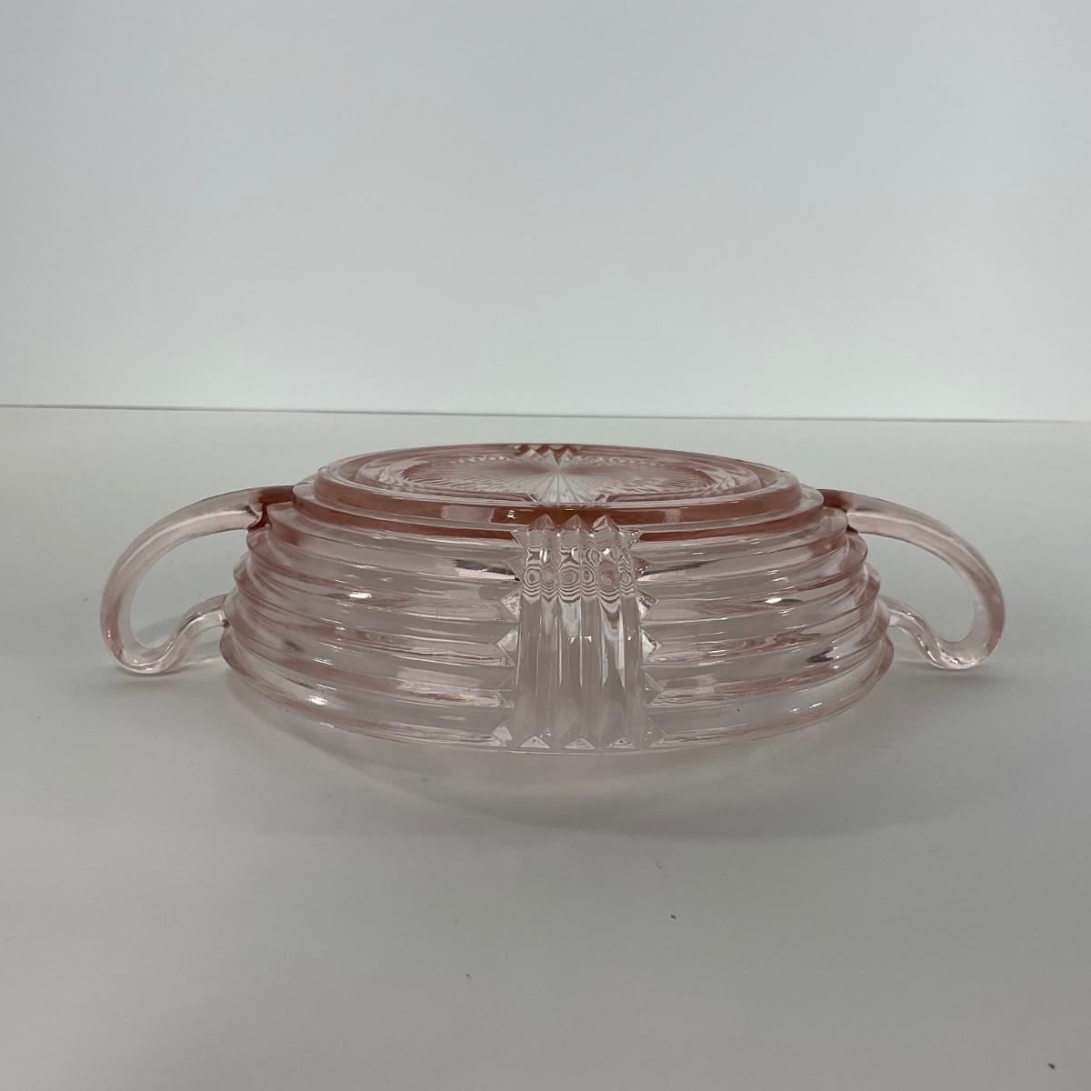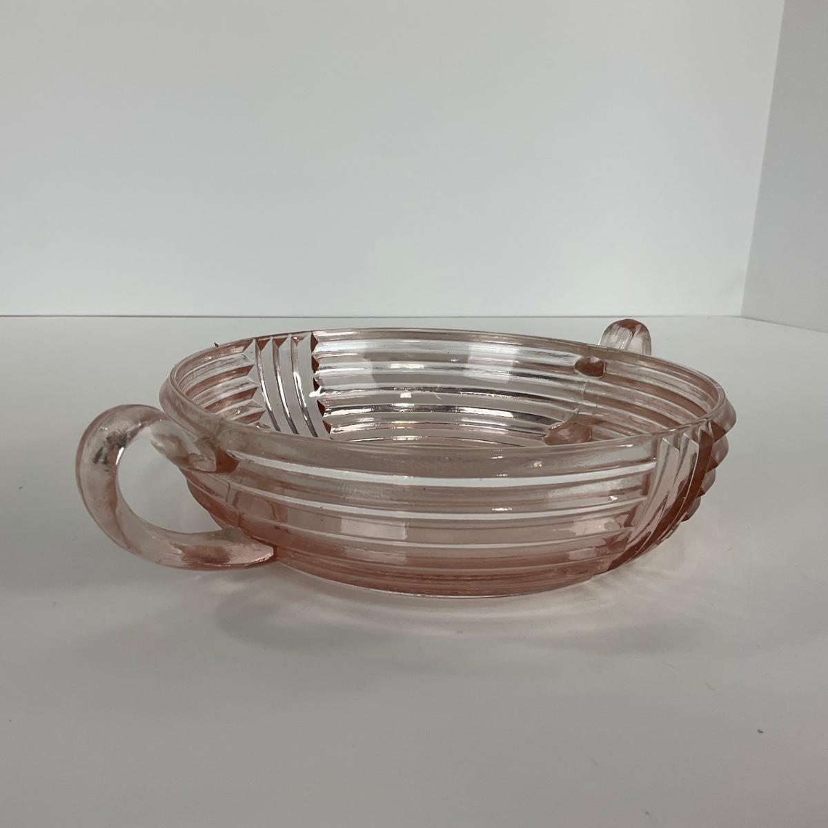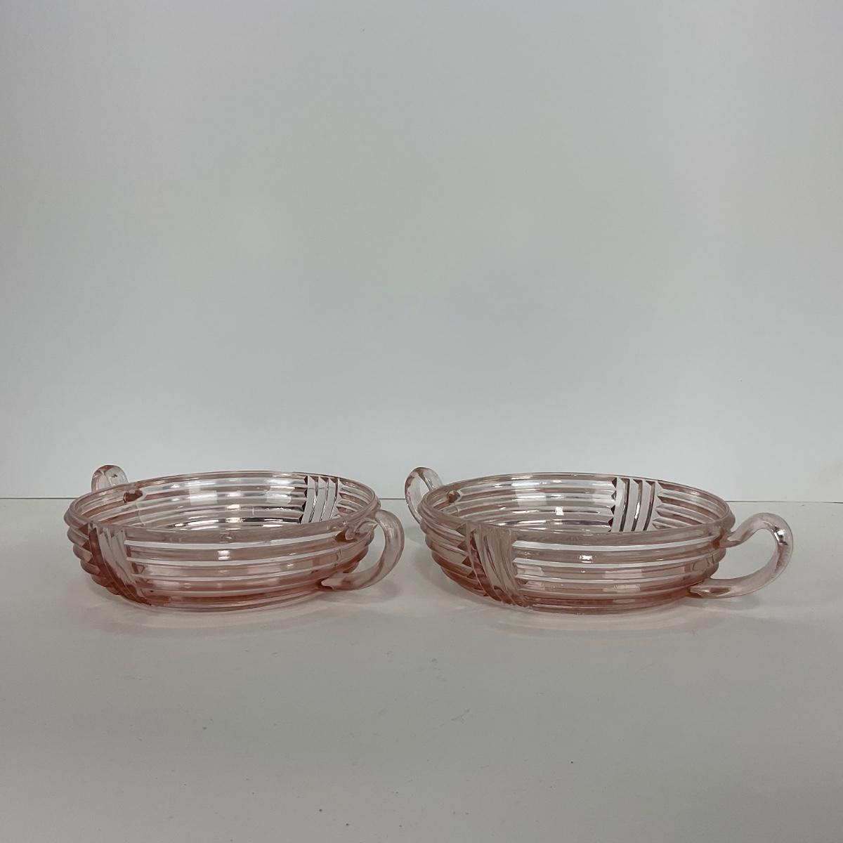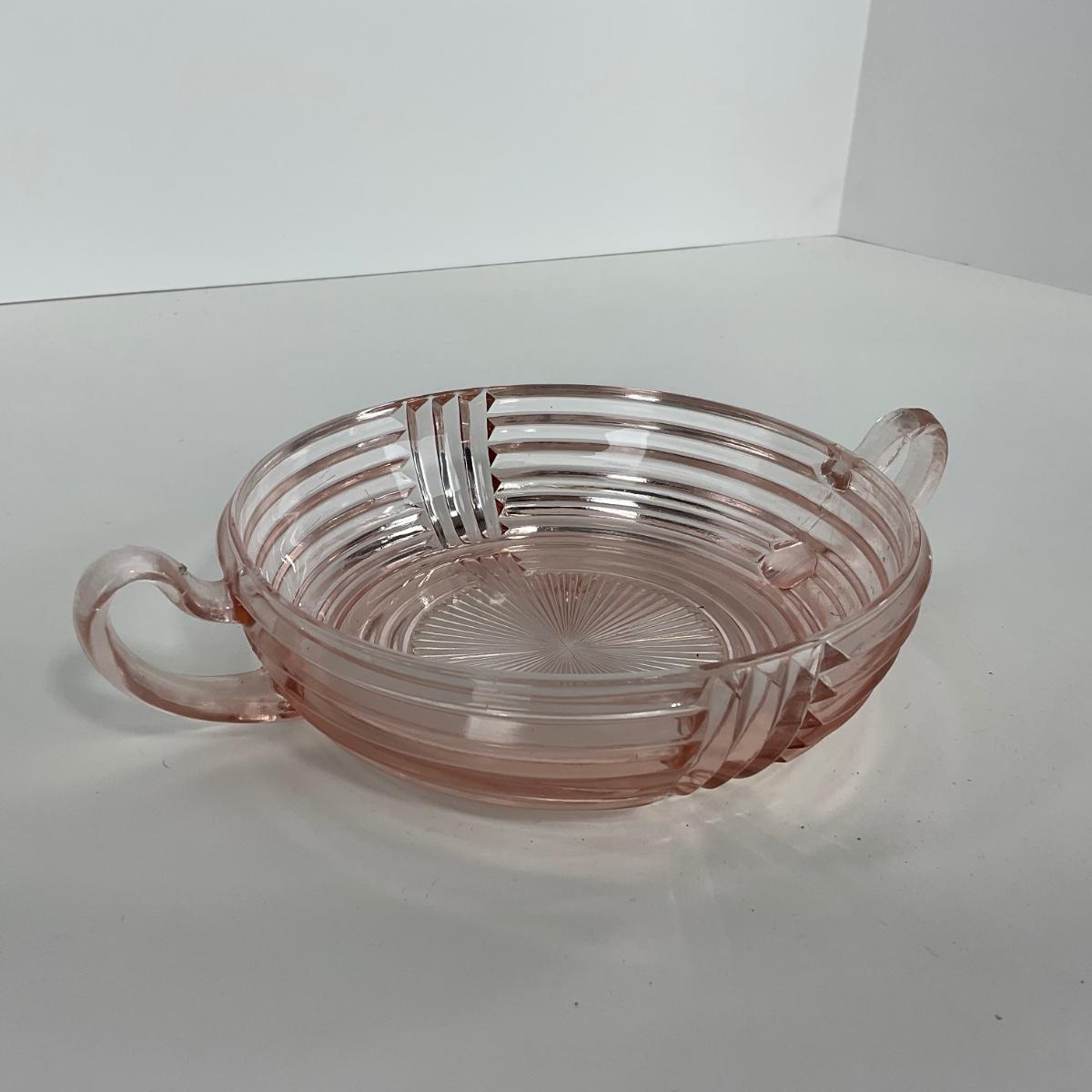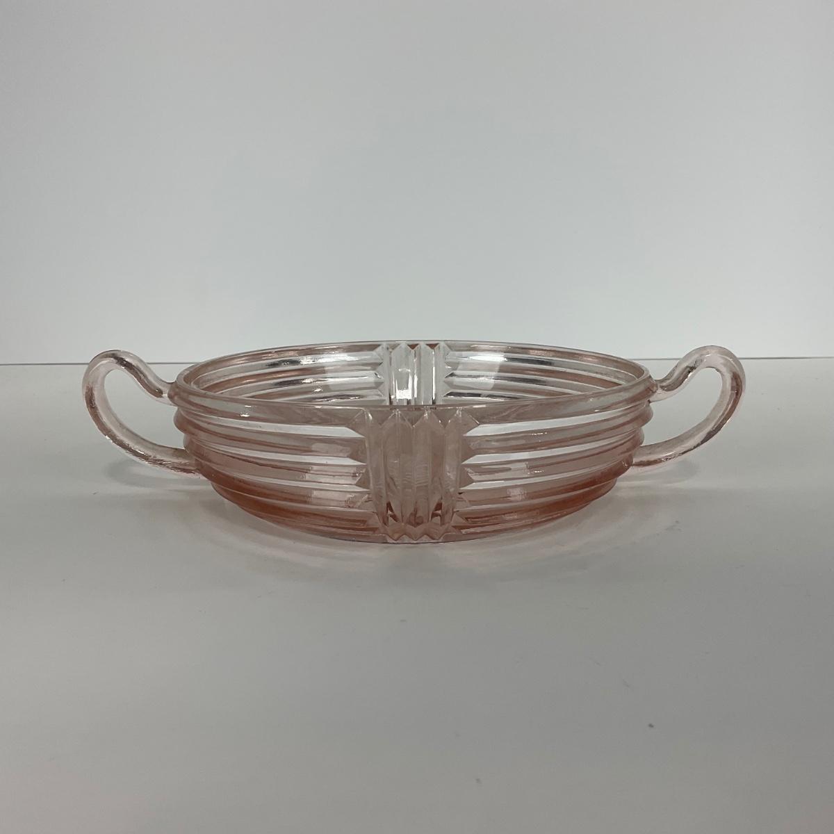 -64- GLASSWARE | Anchor Hocking Pink | Two Handled Relish Bowls
