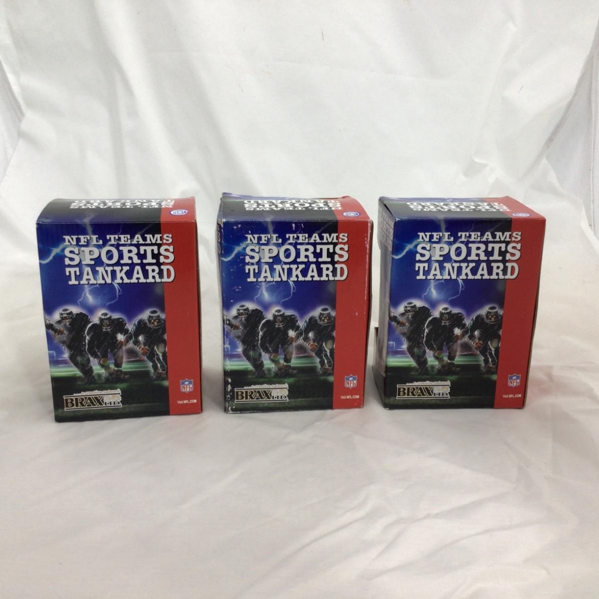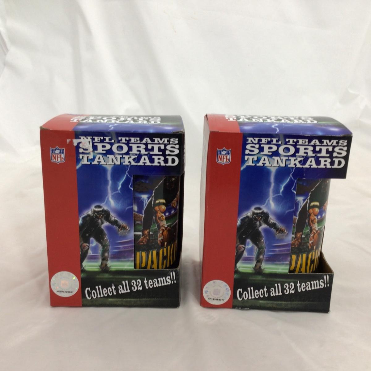 Five Identical NFL Branded Packer Tankards. In exceptional condition. Please see photos for details and condition. ::: Shipping is available on this lot. If you require shipping you must let us know at the close of the auction. We will coordinate with you after the item has been won. Shipping fees will include insurance up to or exceeding the value of all items being mailed. If you have any questions regarding this lot please contact the auctioneer either via this website, by direct email or by phone. PICK UP TIMES and other important information can be found in the TERMS and DESCRIPTION of the auction. Please take a look for pertinent information. Thanks!