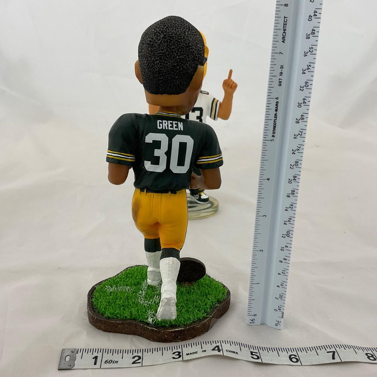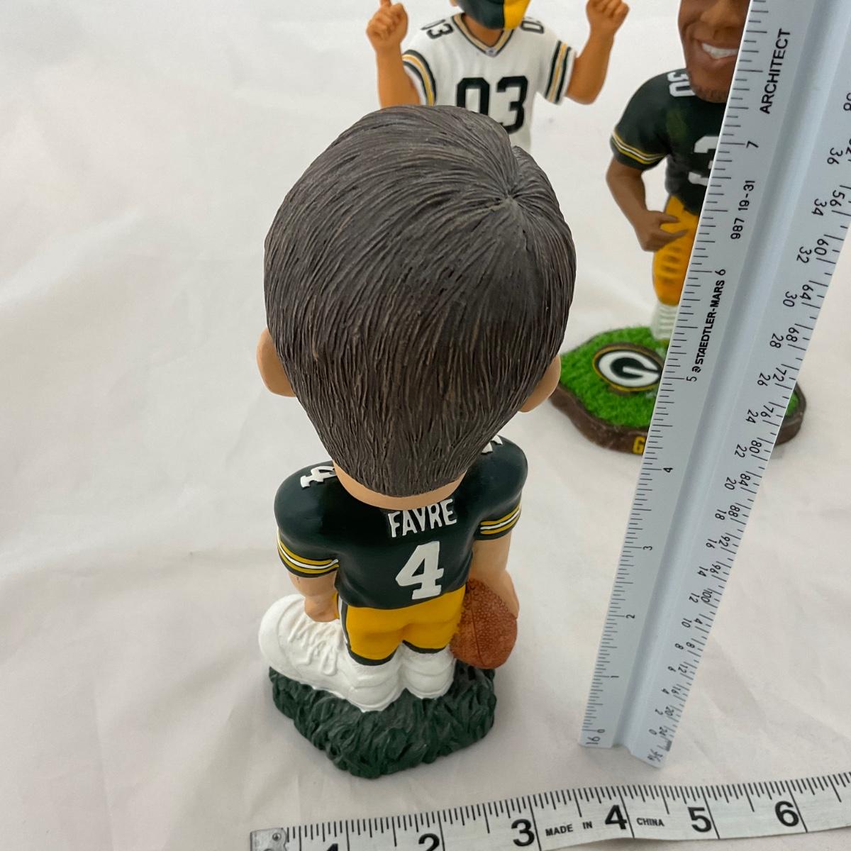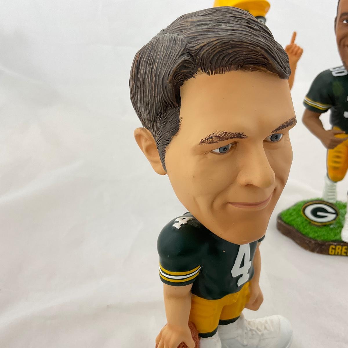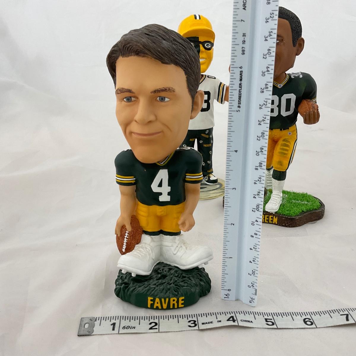 Three Green Bay Packers bobbleheads. Please see photos for details and condition. ::: Shipping is available on this lot. If you require shipping you must let us know at the close of the auction. We will coordinate with you after the item has been won. Shipping fees will include insurance up to or exceeding the value of all items being mailed. If you have any questions regarding this lot please contact the auctioneer either via this website, by direct email or by phone. PICK UP TIMES and other important information can be found in the TERMS and DESCRIPTION of the auction. Please take a look for pertinent information. Thanks!