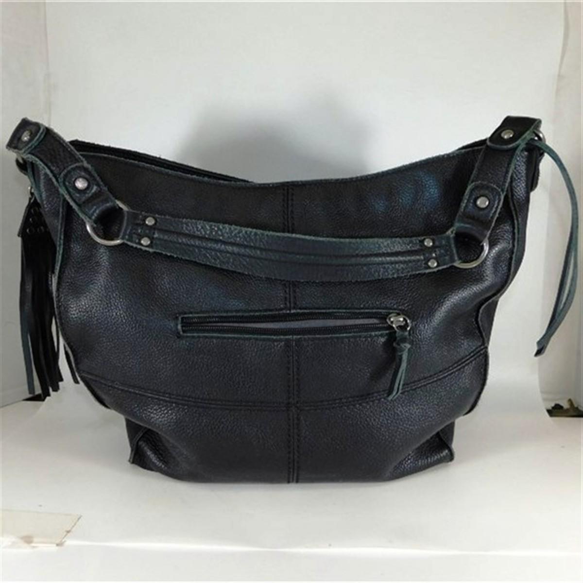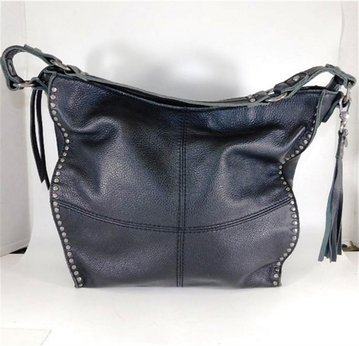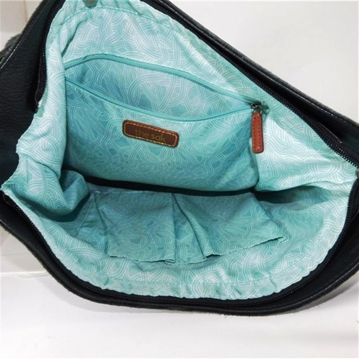 64 The SAK Black Soft Leather Studded Embellishments ~ Light Wear Around the Edges ~ (Makeup Mark on Inner Pocket) 15 x 12