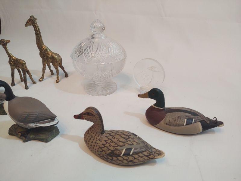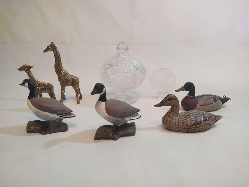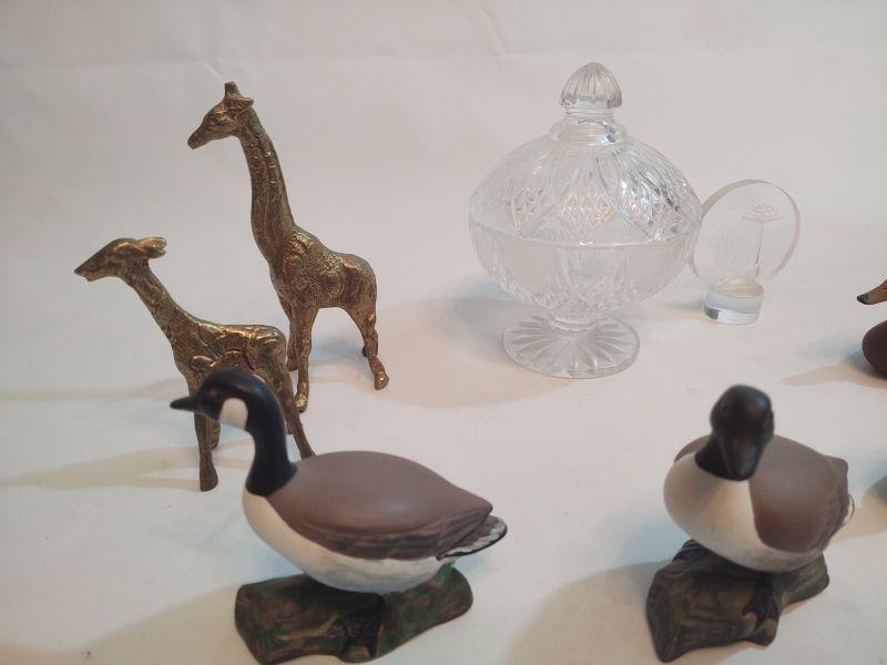 Includes geese, ducks, giraffes, a glass candy bowl with lid, an overseas souvenir.