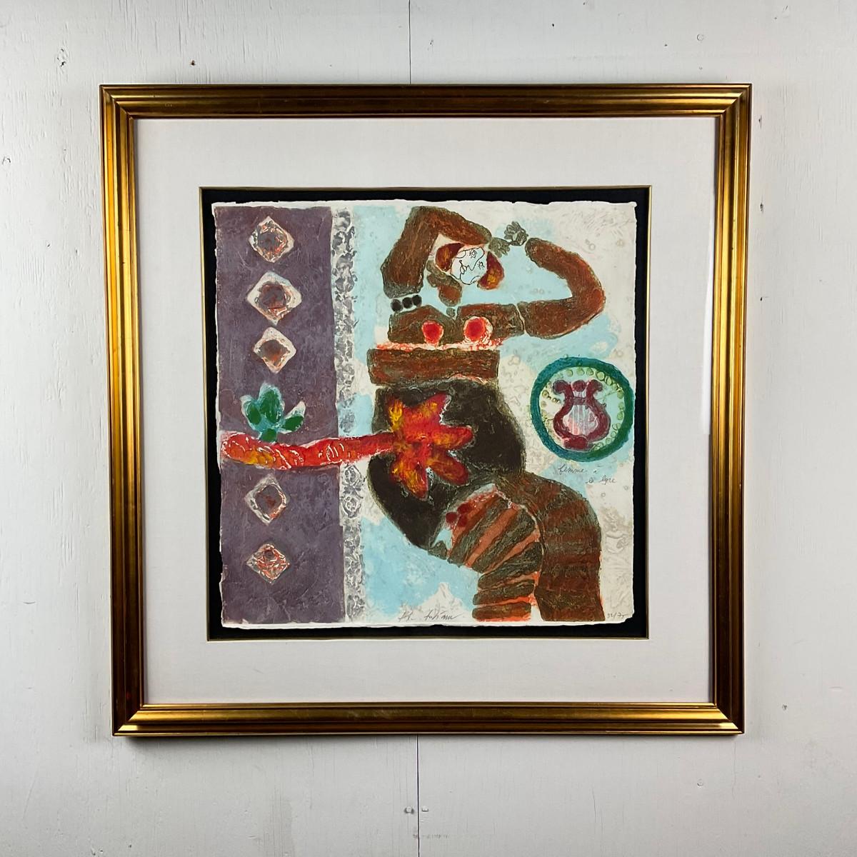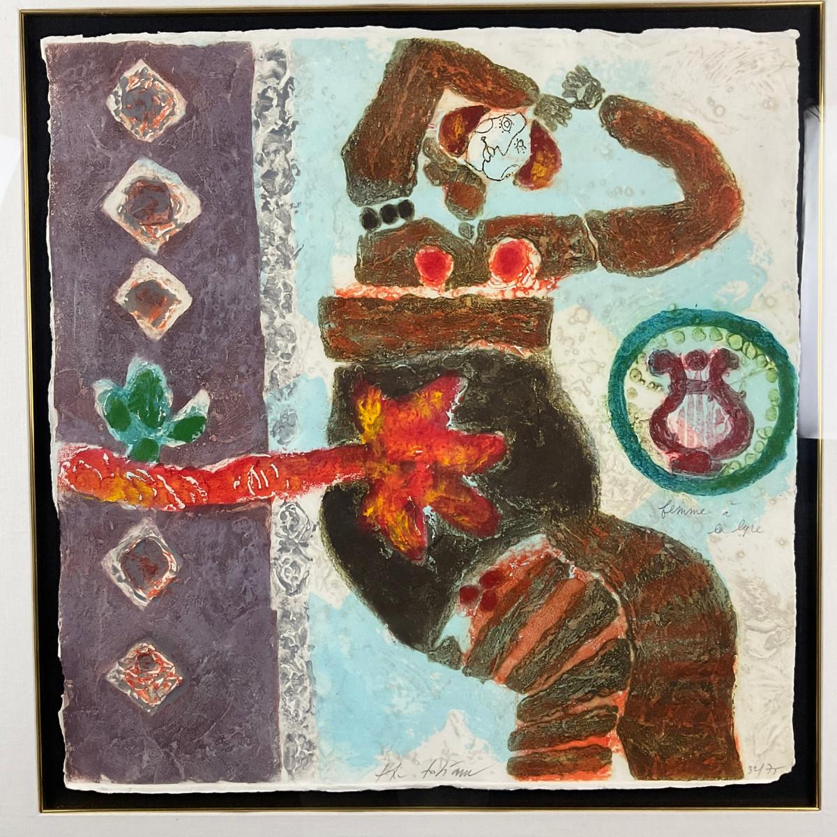 640 Limited Edition Colored Etching By Théo Tobiasse "Femme à La Lyre" #32/75