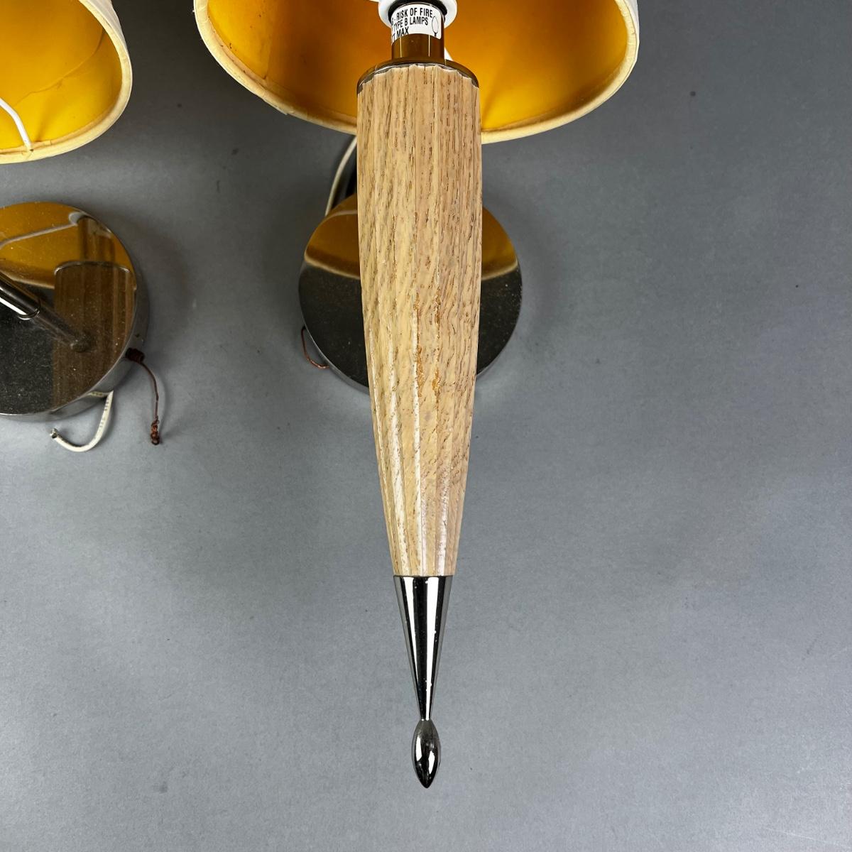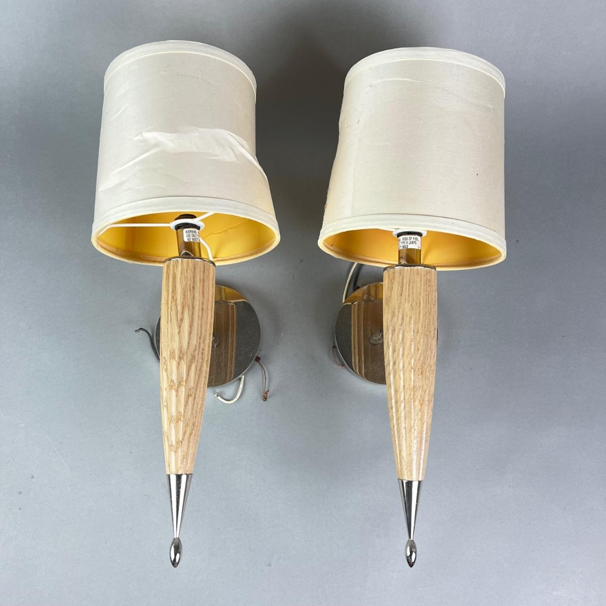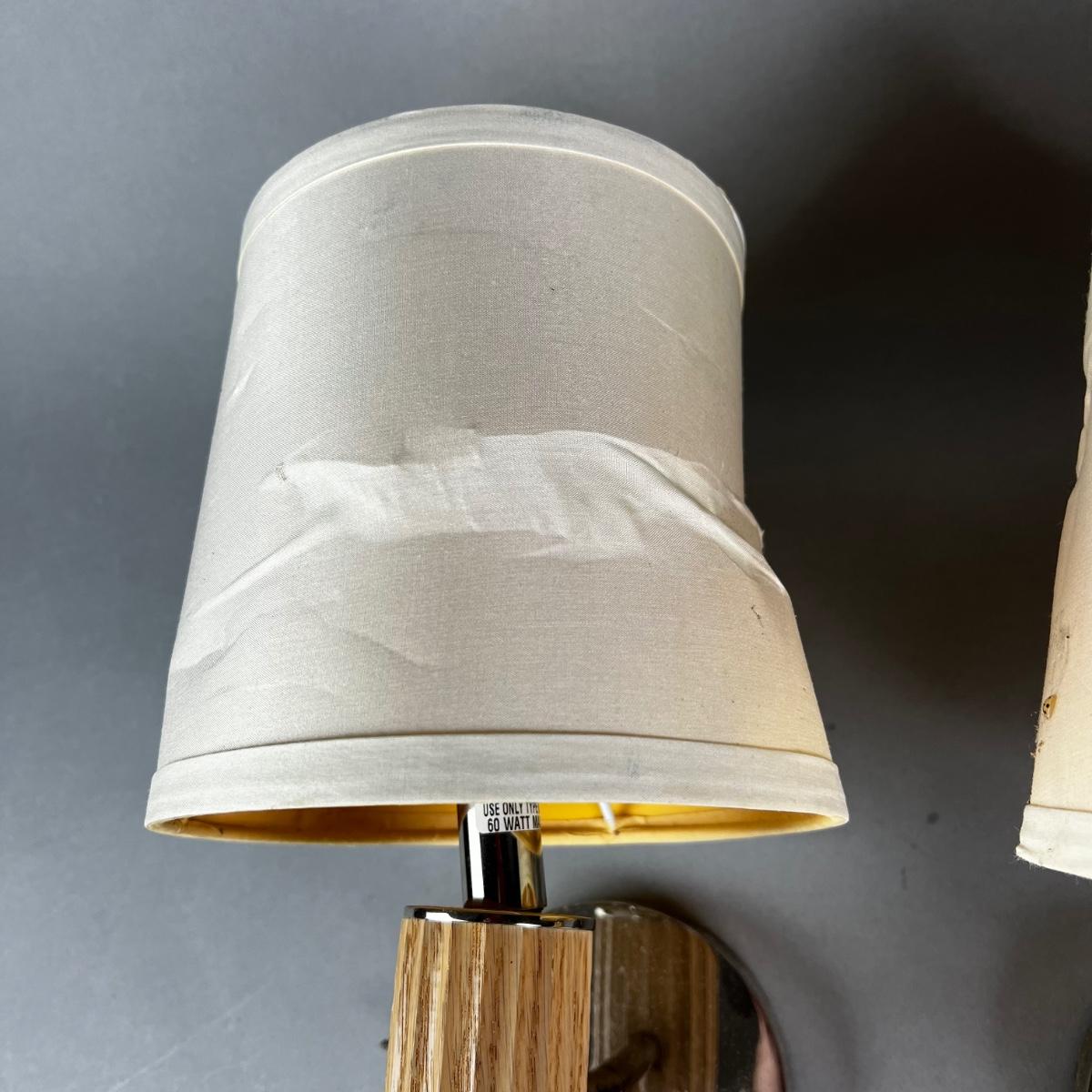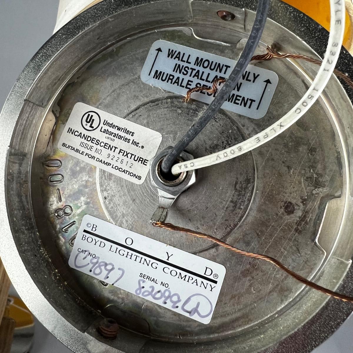 Pair of mid century sconces from Boyd's Lighting Company. The lampshades may need to be replaced because they are damaged, also only one of the lamps is damaged where you screw the light bulb (see photos)