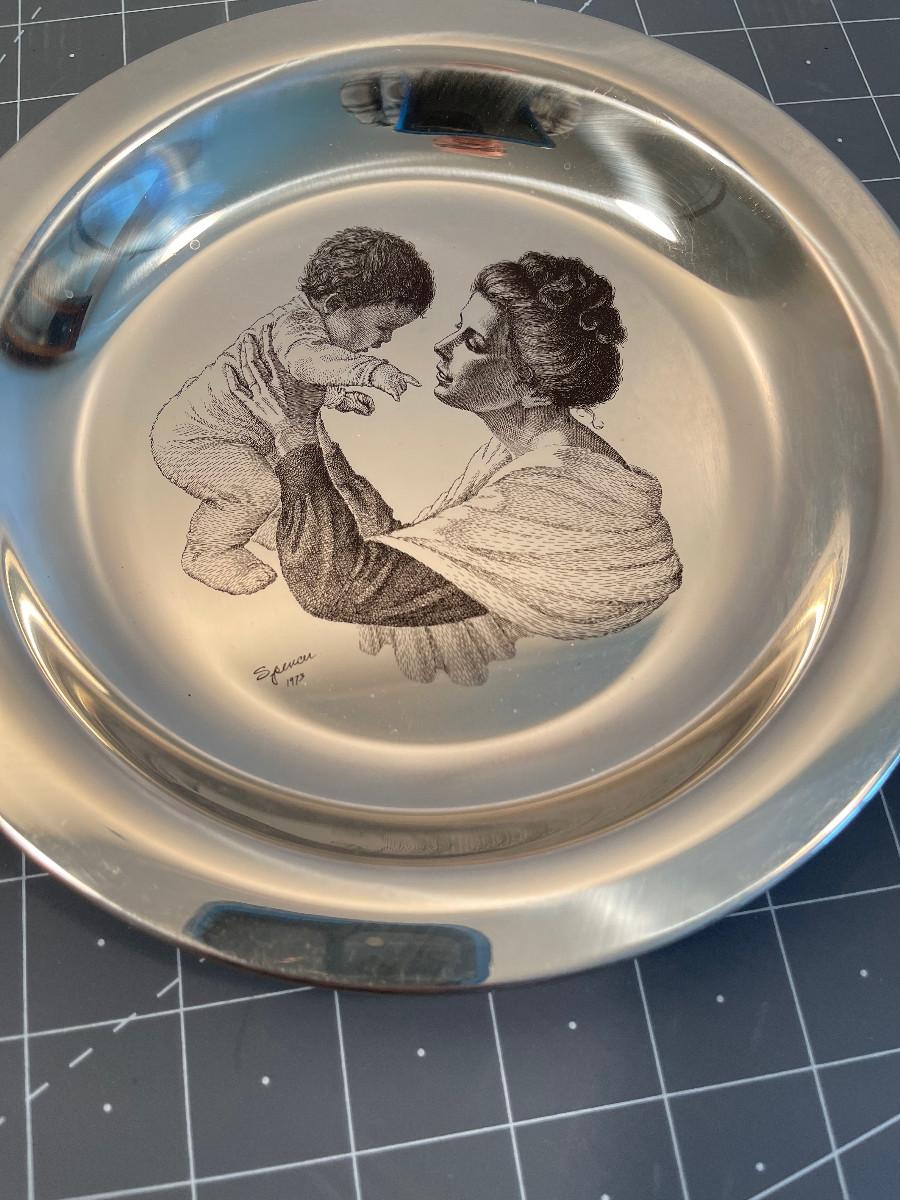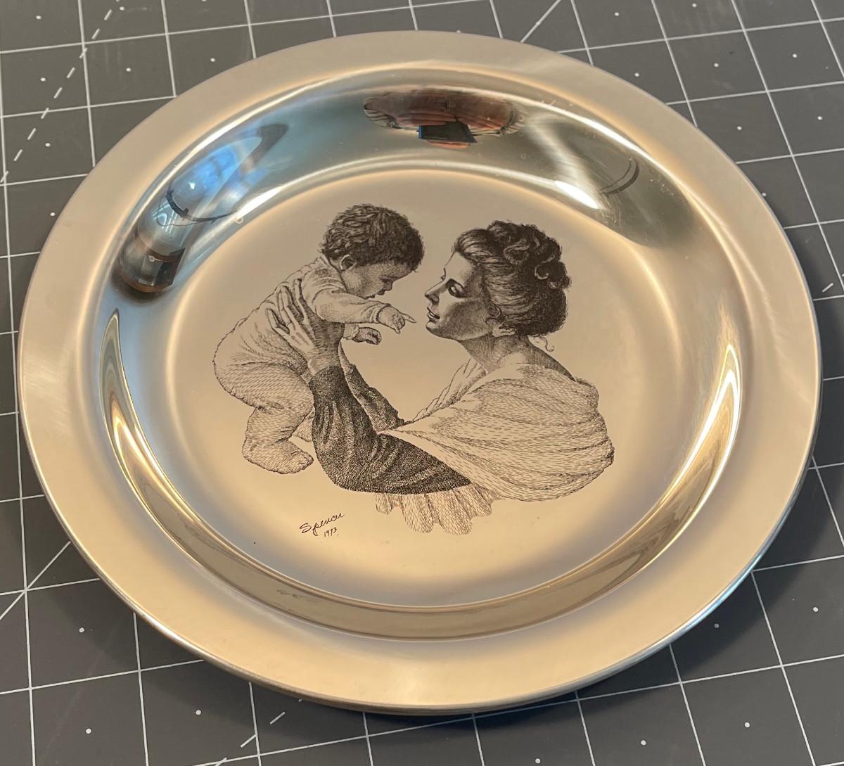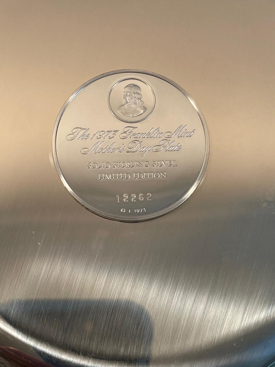 #640 Solid Sterling Silver Franklin Mint Plate Mothers Day 1973