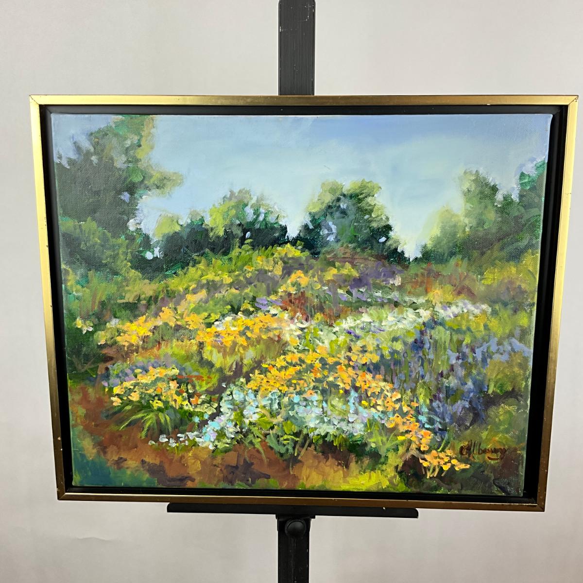 641 Signed Acrylic On Canvas Of Flower Landscape