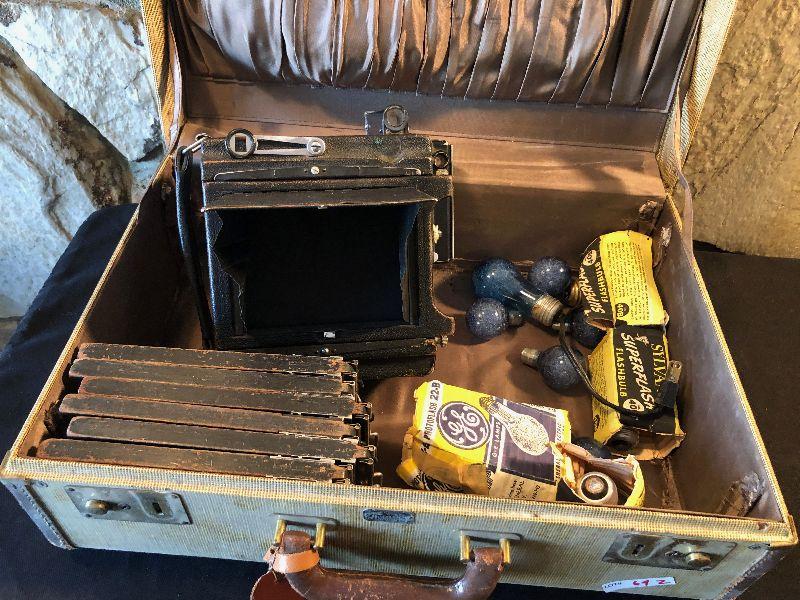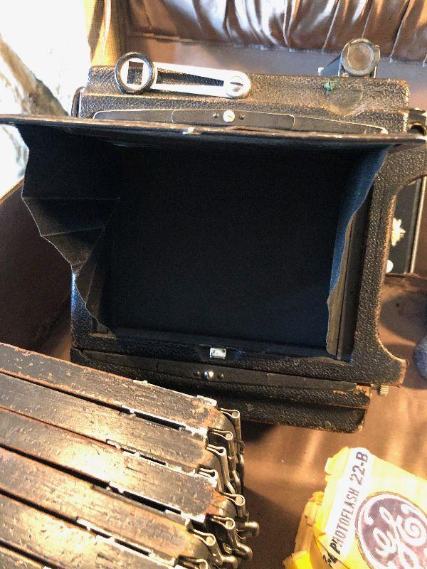 unknown working condition sold as shown, flash, plates, bulb and case.