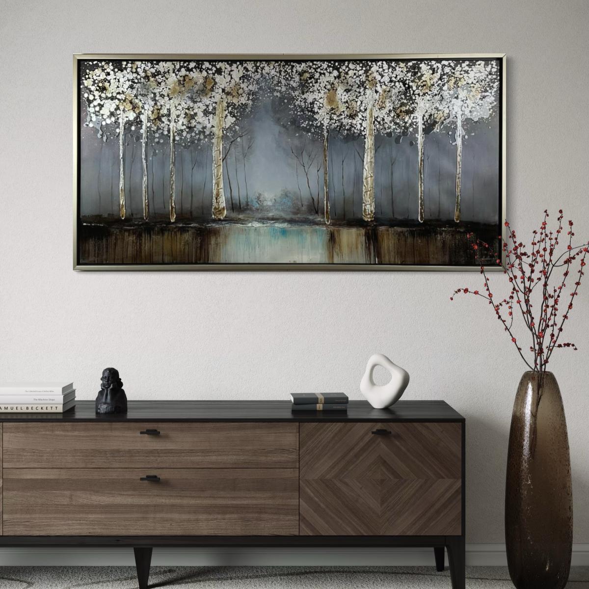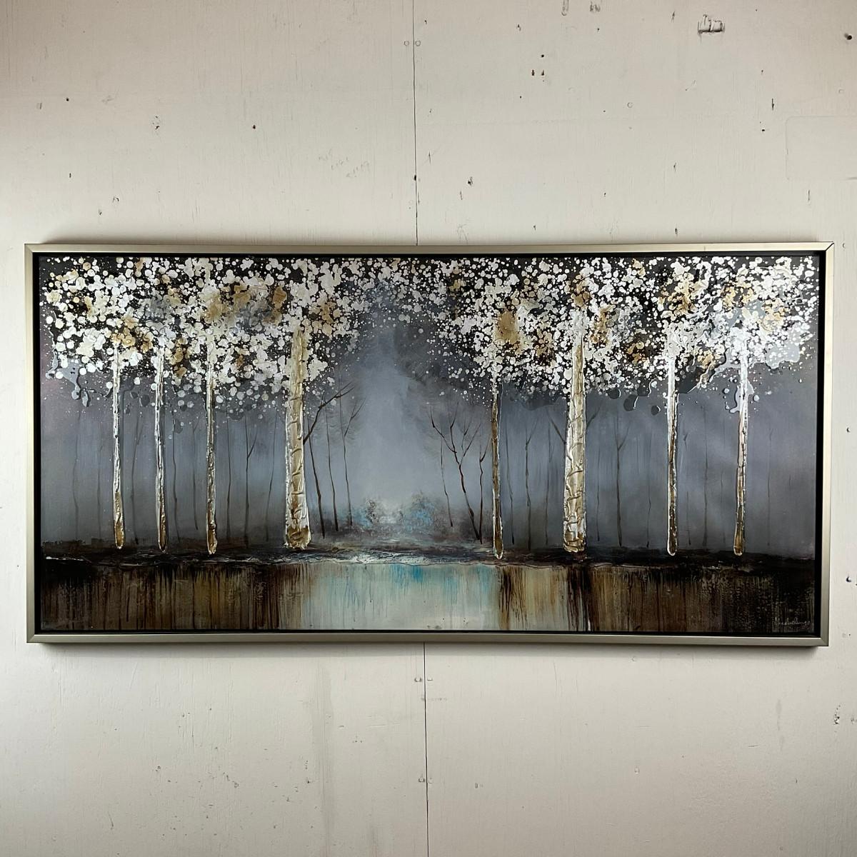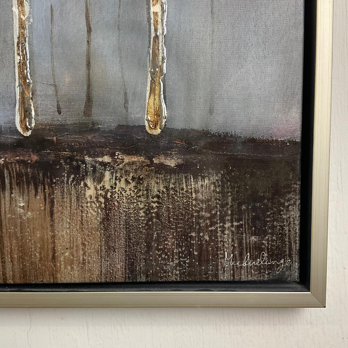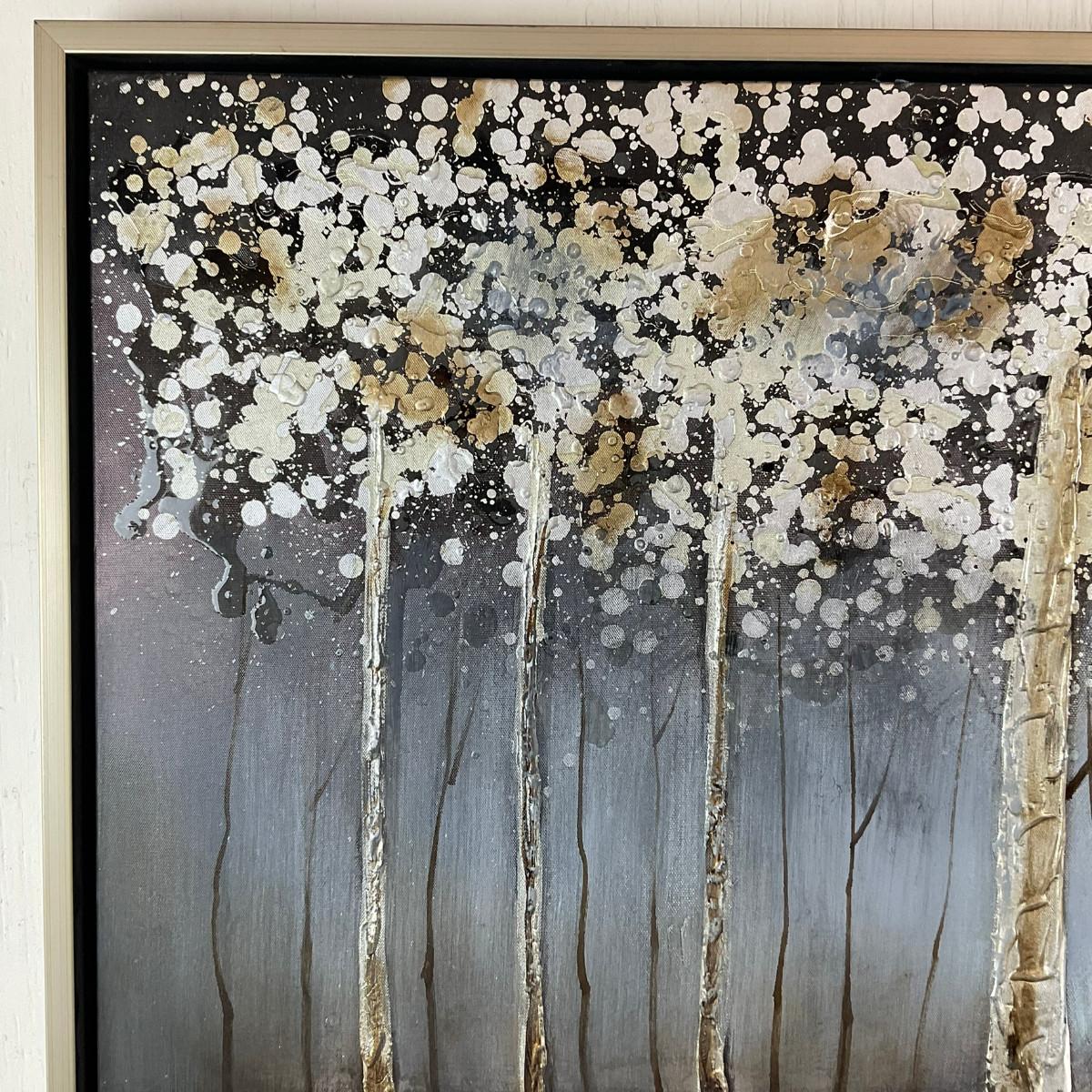 643 Contemporary Abstract Birch Forest Mixed-Media Painting, Signed