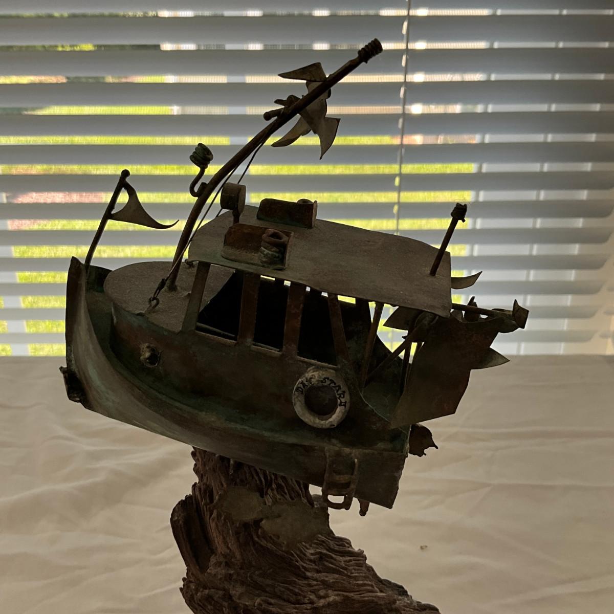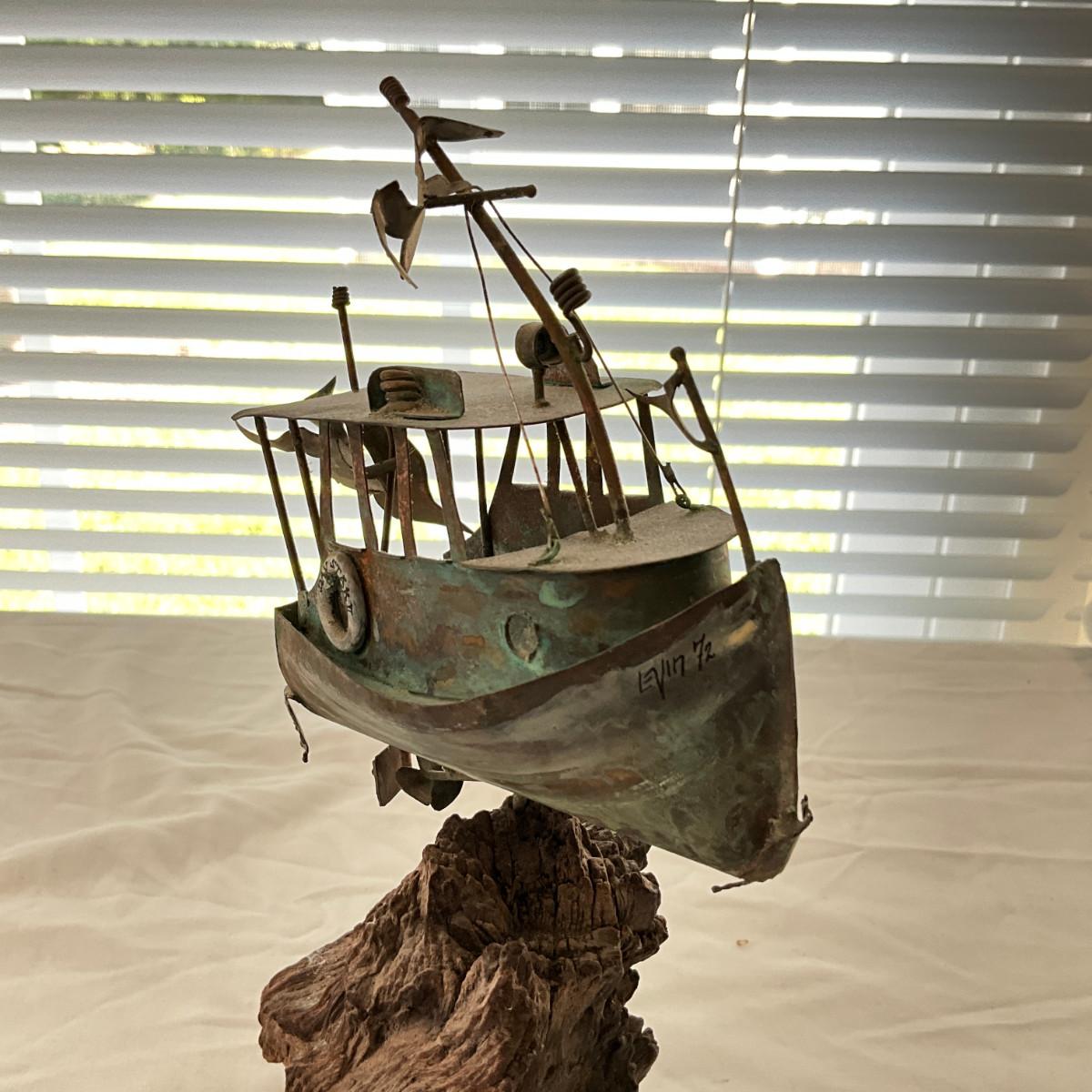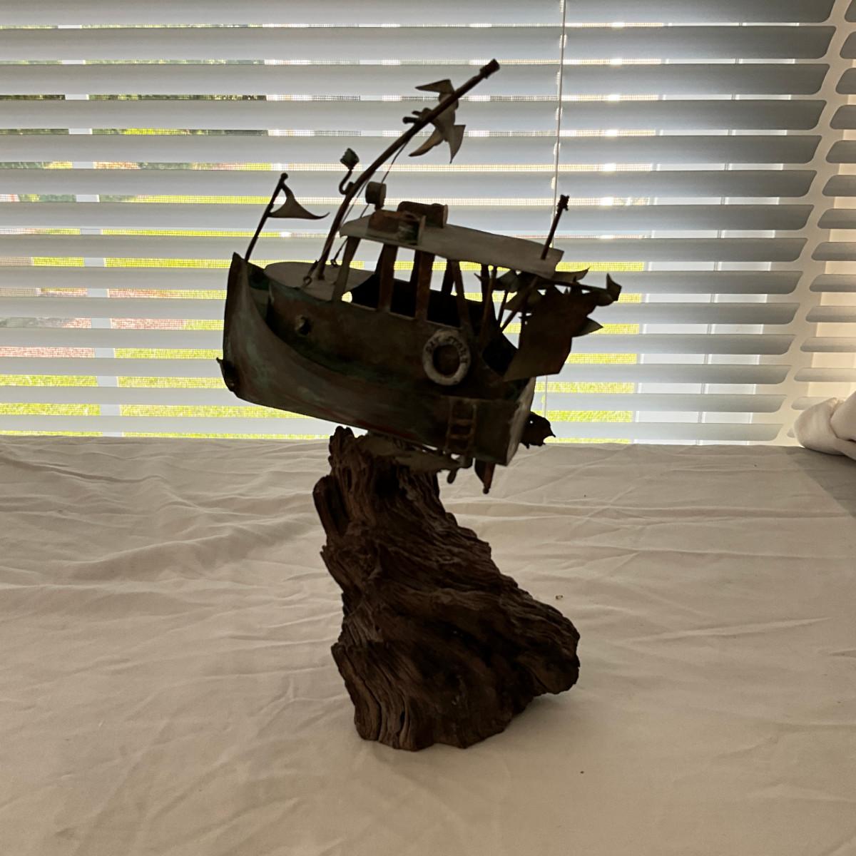 643 Copper/Bronze Ship Model On Drift Wood "Day Star II"