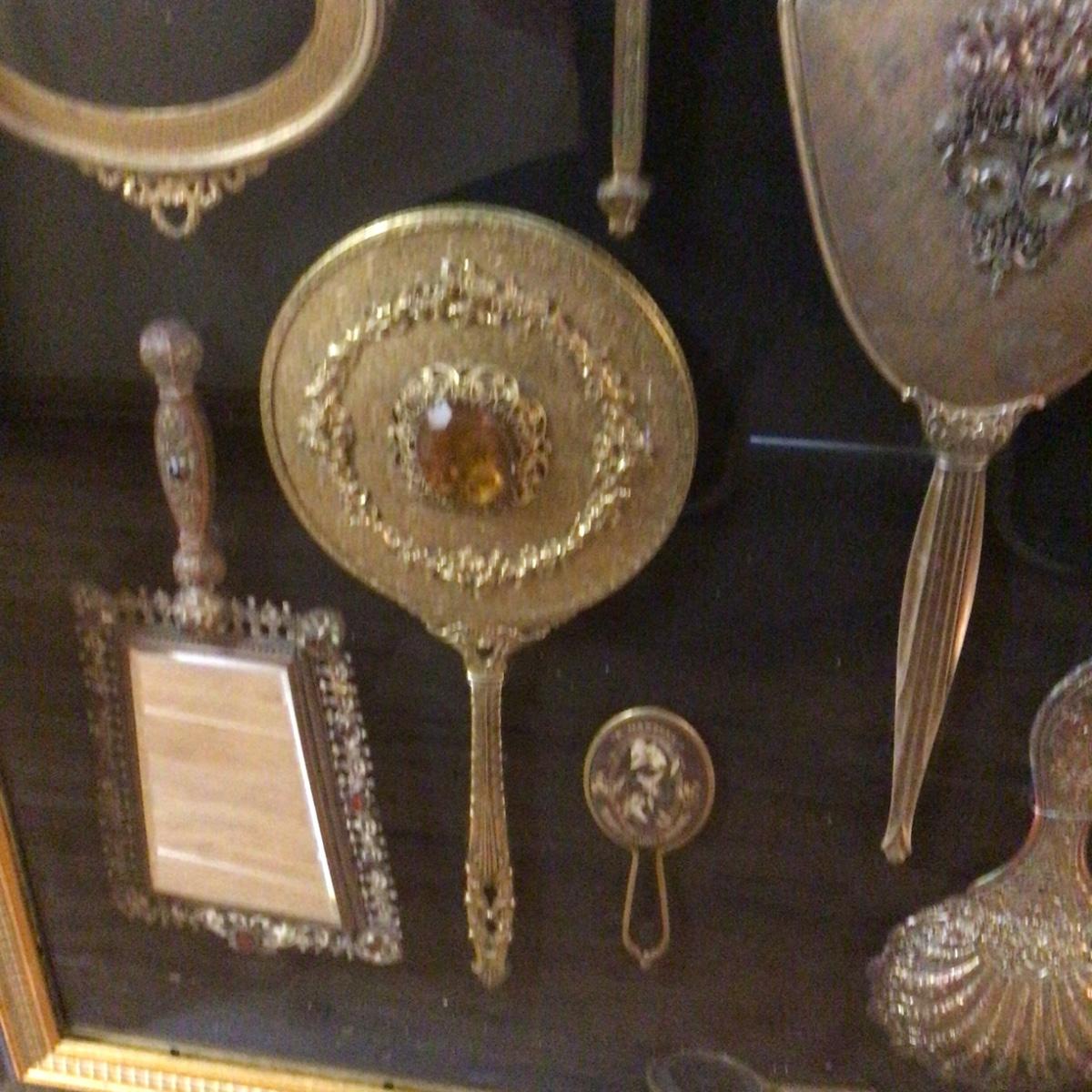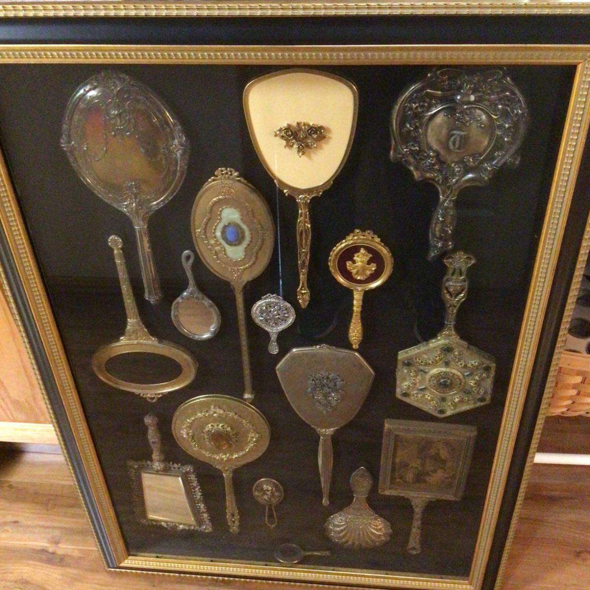 643 Framed Antique Hand Mirror Display