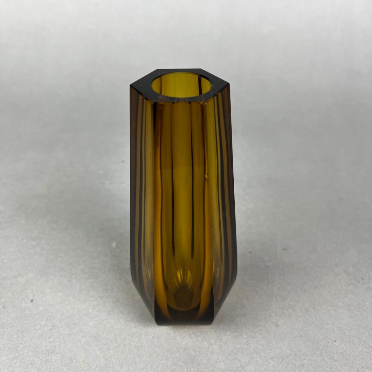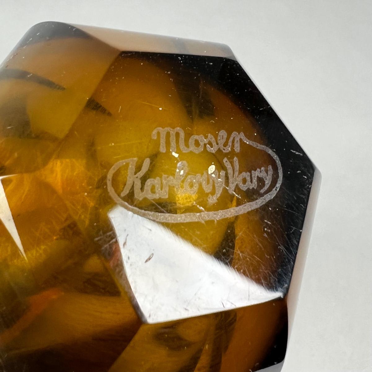 Mid century hand blown glass vase measuring 6" H by Moser Karlovy Vary